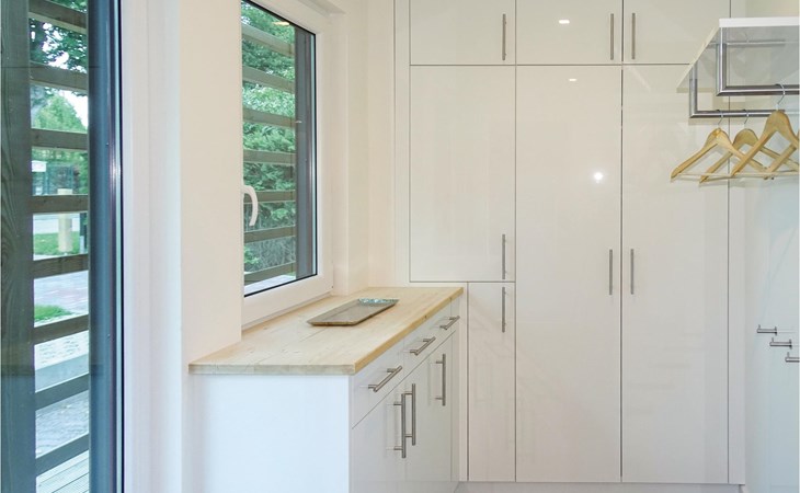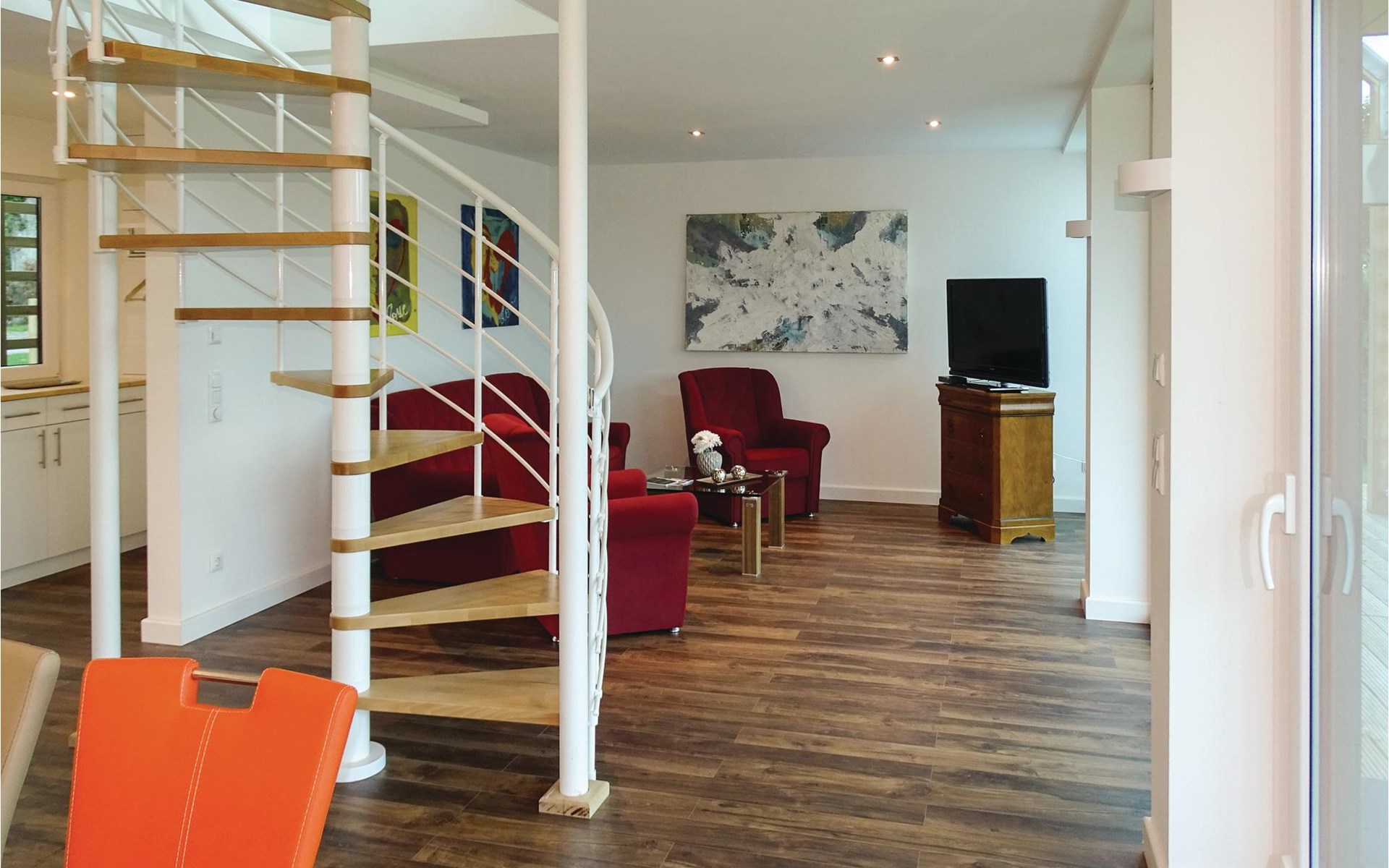 Das Ferienhaus mit der besonderen Bauweise ist modern und gemütlich eingerichtet und verfügt über zwei separate Schlafzimmer. Das hochwertig ausgestattete Badezimmer verfügt über eine Waschmaschine und einen Trockner. Fahrräder können gegen Gebühr und nach Verfügbarkeit vor Ort geliehen werden.