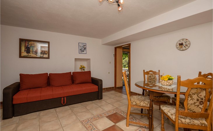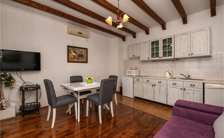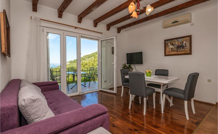 Das Haus liegt in einem dalmatinischen Dorf an der Makarska Riviera, auf ca. 350 m über dem Meeresspiegel und am Fuße des Naturparks Monte Biokovo. Es besteht aus zwei Wohneinheiten im 1. und 2. Stock, die durch eine Innentreppe verbunden sind. Vor der 2. Etage befindet sich eine Terrasse mit Meerblick, auf der Sie wunderschöne Urlaubstage verbringen können. Das Haus ist einfach eingerichtet und im ursprünglichen Stil gehalten. Im Erdgeschoss mit separatem Eingang steht Ihnen eine kleine Küche mit Grill zum geselligen Beisammensein zur Verfügung.