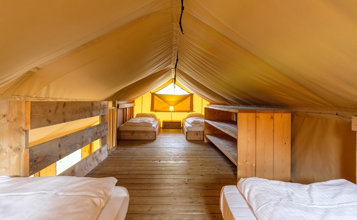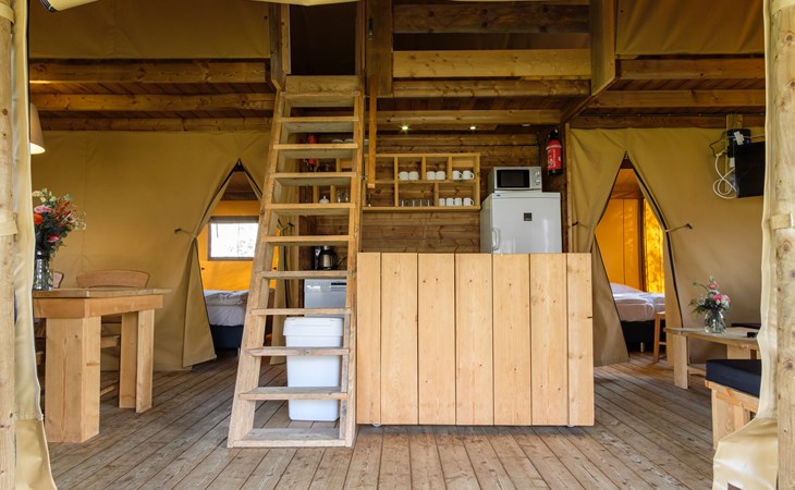 Wij vonden de inrichting van de tent erg leuk, met ons 4 veel ruimte zodat de kinderen lekker hun eigen bovenruimte hadden. Leuk eigen terrasje.