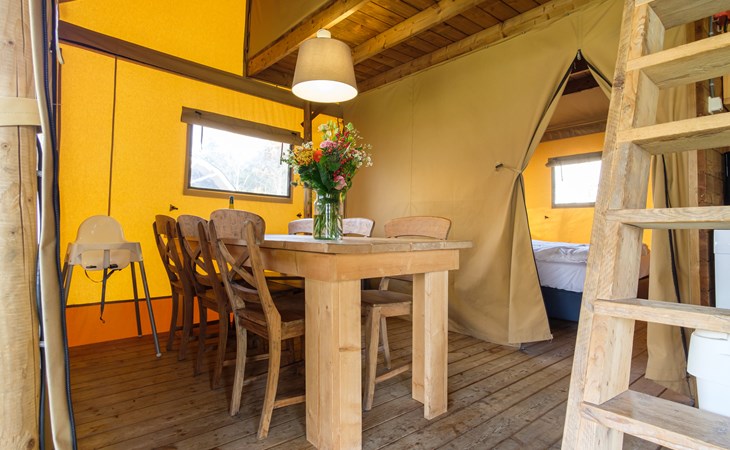 Superleuk! Onze safaritent was gaaf, vooral met de slaapzolder voor de kids. Ook leuk dat er een speeltuin op ieder veld is en veilig omheind. Het zwembad was ook leuk en de glijbaan hebben we veelvuldig getest.