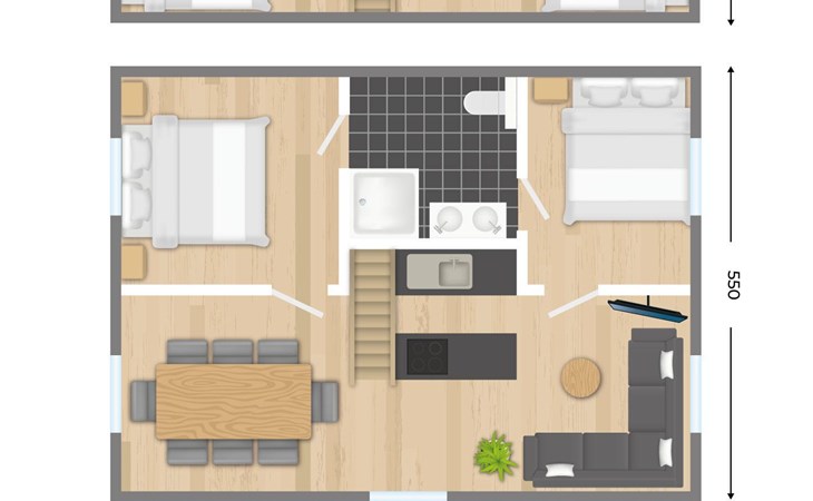 Wenn Sie die Verandalodge betreten, werden Sie sofort von einer gemütlichen Sitzecke auf der rechten Seite erwartet, wo Sie gemeinsam Ihre Lieblingssendungen im Fernsehen genießen können. Auf der linken Seite befindet sich der große Esstisch, der Platz für acht Personen bietet. In der Mitte der Lodge befindet sich die voll ausgestattete Küche, die mit allen modernen Annehmlichkeiten ausgestattet ist. Die Verandalodge hat drei Schlafzimmer, die Platz für acht Personen bieten. Ein Schlafzimmer ist mit einem bequemen Boxspring-Doppelbett ausgestattet, während das zweite Schlafzimmer zwei Einzelbetten hat. Das dritte Schlafzimmer befindet sich in der zweiten Etage und verfügt über vier Einzelbetten. Bettwäsche wird standardmäßig für alle Gäste über 2 Jahren zur Verfügung gestellt. Das Badezimmer ist mit einer Dusche mit separatem Duschkopf, einem Doppelwaschbecken und einer Toilette ausgestattet. Die mittlere Zeltplane lässt sich öffnen, so dass Sie mühelos zwischen drinnen und draußen wechseln können. Genießen Sie die frische Luft, während Sie sich draußen in der Sitzgruppe entspannen oder am großen Picknicktisch zusammensitzen. Ein perfekter Ort zum Entspannen, während die Kinder auf dem Spielplatz spielen!