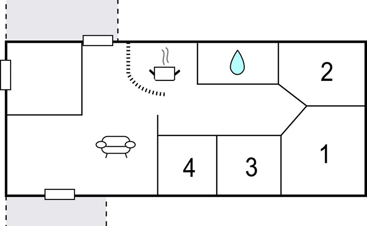 Auf einem großen Rasengrundstück direkt am Meer liegt dieses schöne Ferienhaus. Es ist geräumige und sehr hell und freundlich eingerichtet, u. a. sind große Schlafzimmer, ein schönes Badezimmer und eine praktische Küchenabteilung vorhanden.