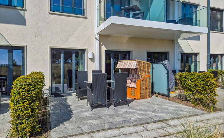 Die Ferienwohnung über zwei Etagen (EG und 1. OG) verspricht eine hochwertige Genuss- und Wohlfühlatmosphäre. Dank eines separaten Eingangs bietet sie besonders viel Privatsphäre. Exklusive Möbel wurden perfekt aufeinander abgestimmt und stehen für ein Lebensgefühl, das Harmonie und Eleganz vereint. Jedes Möbelstück und Wohnaccessoire ist sorgfältig ausgewählt, nichts wurde dem Zufall überlassen. Insbesondere auf ein gesundes Raumklima und allergikerfreundliche Materialen wurde geachtet. Sowohl auf der teilweise überdachten, 17m2 großen Terrasse als auch auf dem kleinen Balkon lässt sich abendliche Ostseeluft ganz privat genießen.