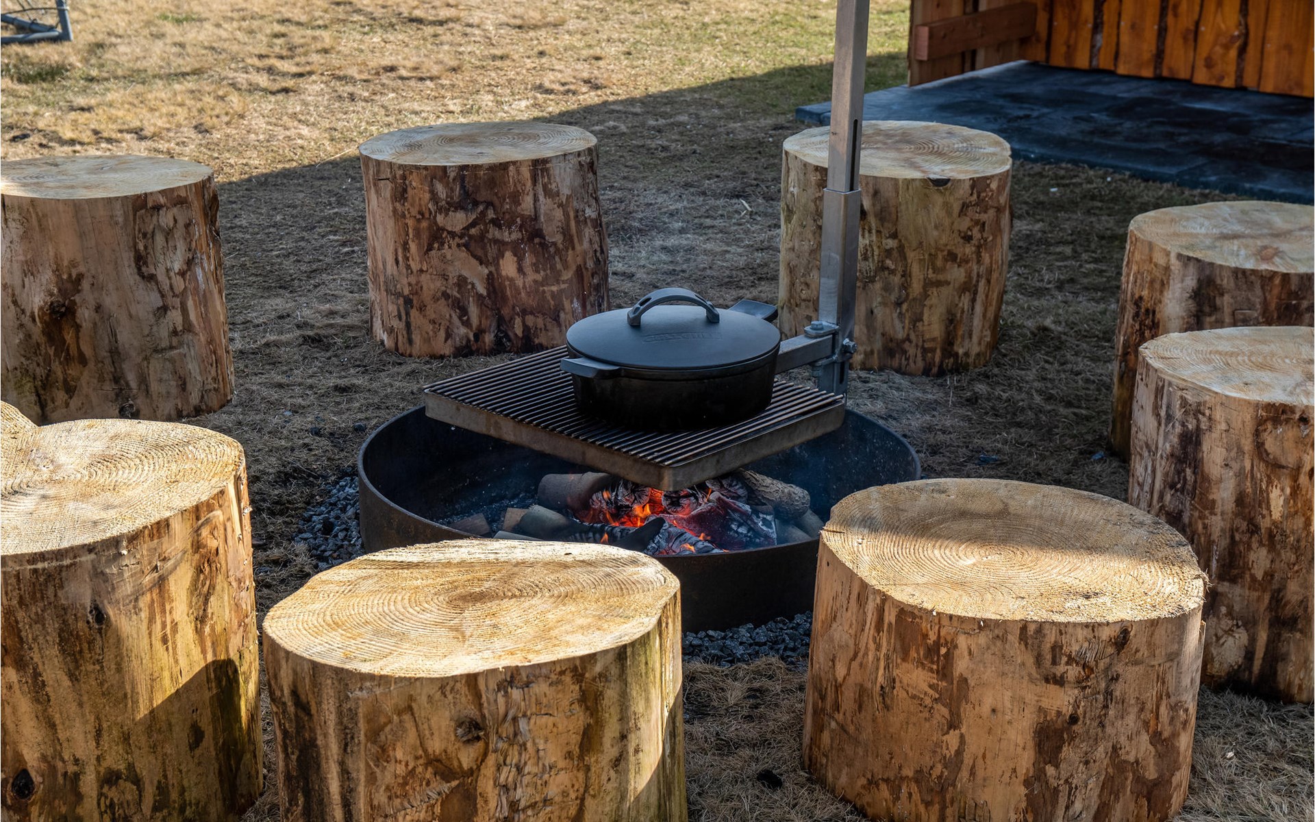 Shelter ist für 6 Personen mit Tisch, Grill und Feuerstelle.