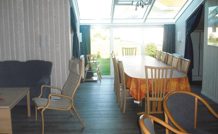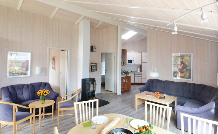 Dieses Haus bietet Platz und wohnliche Funktionalität für große oder befreundete Familien. Egal ob es stürmt, schneit oder die Sonne scheint - kuschelig ist es vorm Kamin, entspannend in Whirlpool oder Sauna und traumhaft im Sommer auf der Terrasse nah dem Meer zu sitzen. Das Haus steht in der 2. Reihe, so dass Sie von hier teilweisen Meerblick haben. Das Haus verfügt über einen modernen Fußboden in Holzoptik und eine Dachfenster-Beschattung über dem Esstisch, so dass Sie auch an besonders hellen Sonnentagen dort ganz entspannt Ihre Mahlzeiten genießen können. Für die Kinder stehen Schaukel und Sandkasten bereit.
