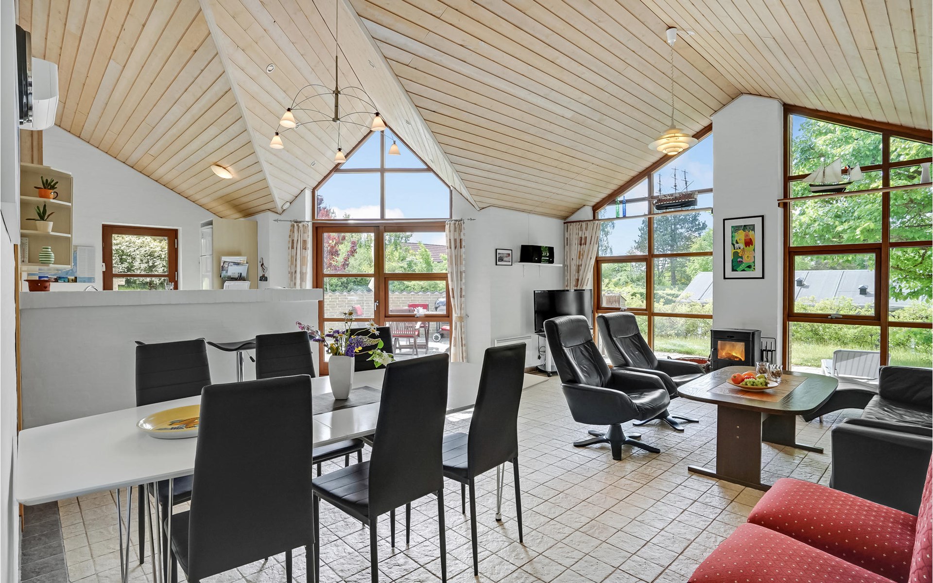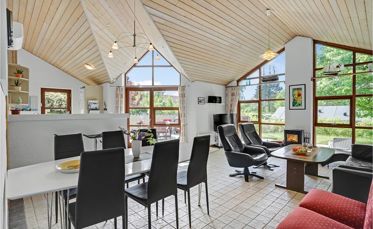 Hier steht ein Architekt hinter dem großen, modernen und hellen Ferienhaus in einer sehr begehrten Ferienhaussiedlung. Sie befinden sich hier im Gehabstandt vom kinderfreundlichen Sandstrand. In der Nähe des Strandes sind Lebensmittelgeschäft, Café und Restaurants zu finden. Ein Fuß- und Radweg verläuft am Strand entlang in die Stadt Ebeltoft. Das Haus liegt hoch und bietet daher eine gute Aussicht. Das Grundstück ist etwas abfallend, Rasen und kleine Bäume wachsen auf ihm. Wohl fühlen werden Sie sich im Haus in drei guten Schlafzimmern, einem guten Badezimmer und einer Wohnküche. Draußen haben Sie die große Terrasse zur Verfügung. Das Internet wird über eine schnelle Glasfaserkabelverbindung geliefert (50/50).