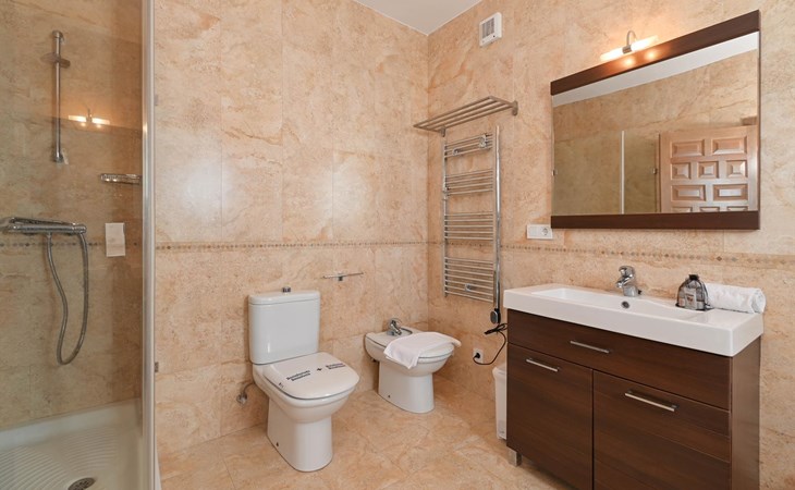 - Eigenes Badezimmer mit Einzelwaschbecken, Dusche, Bidet und Toilette