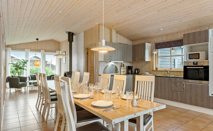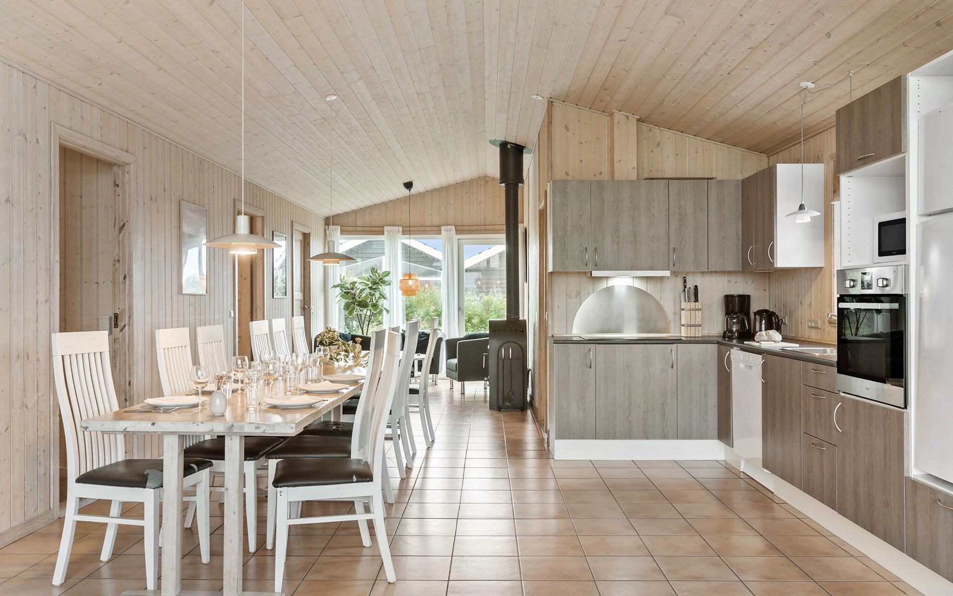 Dieses einladende Ferienhaus in der malerischen Landschaft von Nr. Lyngby, etwas nördlich von Løkken gelegen, ist der ideale Ort für eine entspannte Auszeit mit der ganzen Familie. Die modern gestaltete und lichtdurchflutete Küche bietet viel Platz zum Kochen. Der Wohnbereich zeichnet sich durch große Fensterfronten aus, die viel Tageslicht hereinlassen und eine gemütliche Atmosphäre schaffen. Genießen Sie die freie Zeit auf den bequemen Sofas, spielen Sie lustige Gesellschaftsspiele oder verbringen Sie gemütliche Abende am Kaminofen.