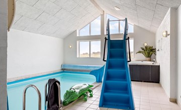 Dieses Ferienhaus bietet zahlreiche Aktivitäten für Groß und Klein. Organisieren Sie spannende Urlaubsturniere im Poolbillard oder Tischfußball und erfrischen Sie sich im hauseigenen Pool, Whirlpool und in der Sauna. Draußen laden das Trampolin, der Spielturm und die Rutsche die kleinen Urlaubsgäste zu vergnüglichen Stunden im Freien ein.