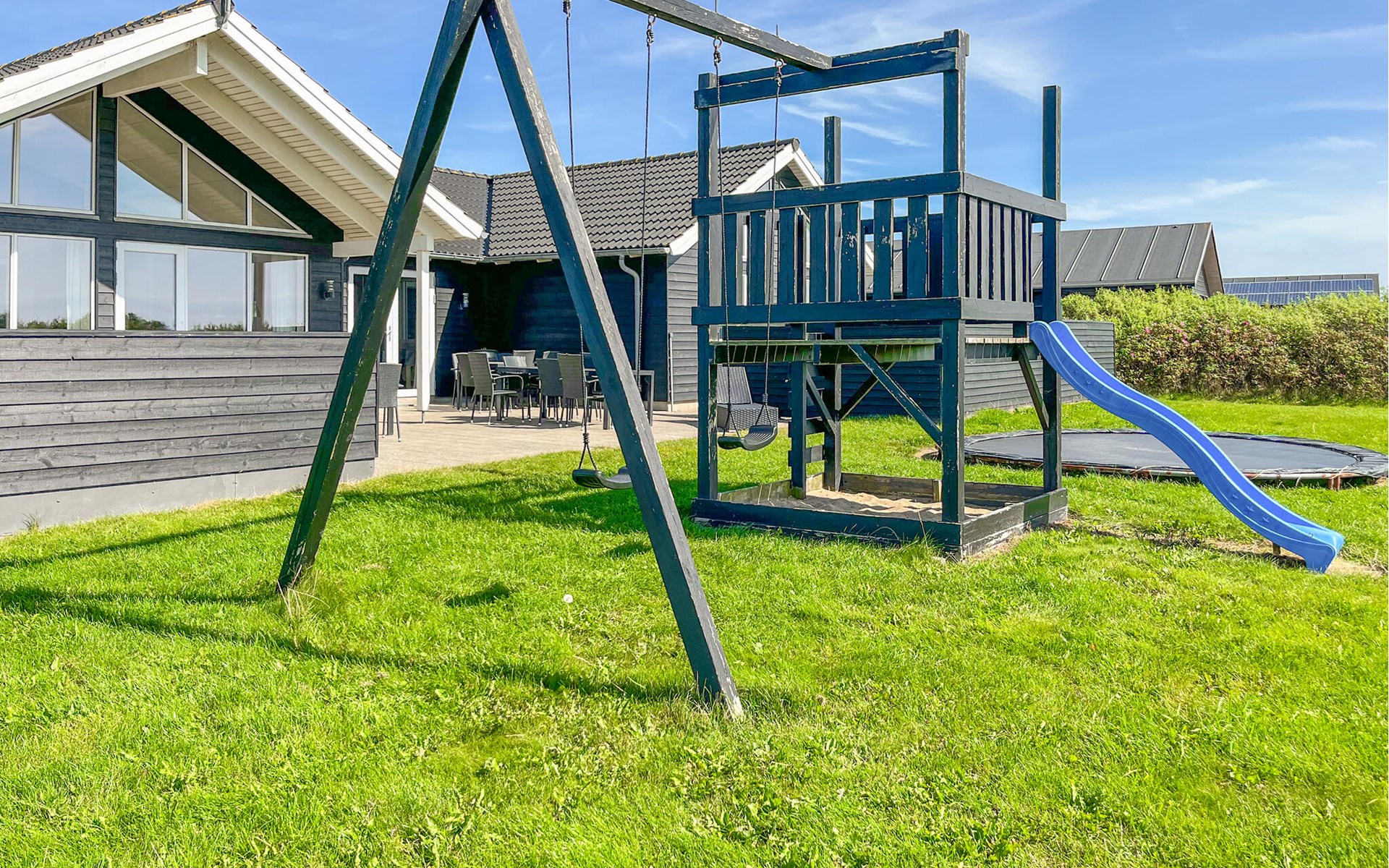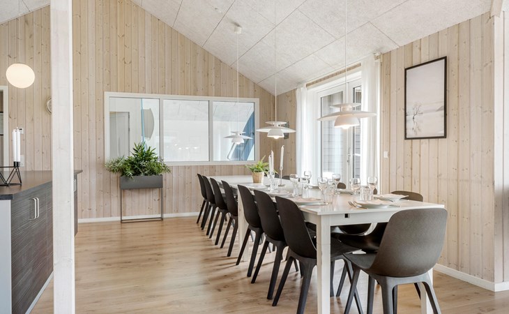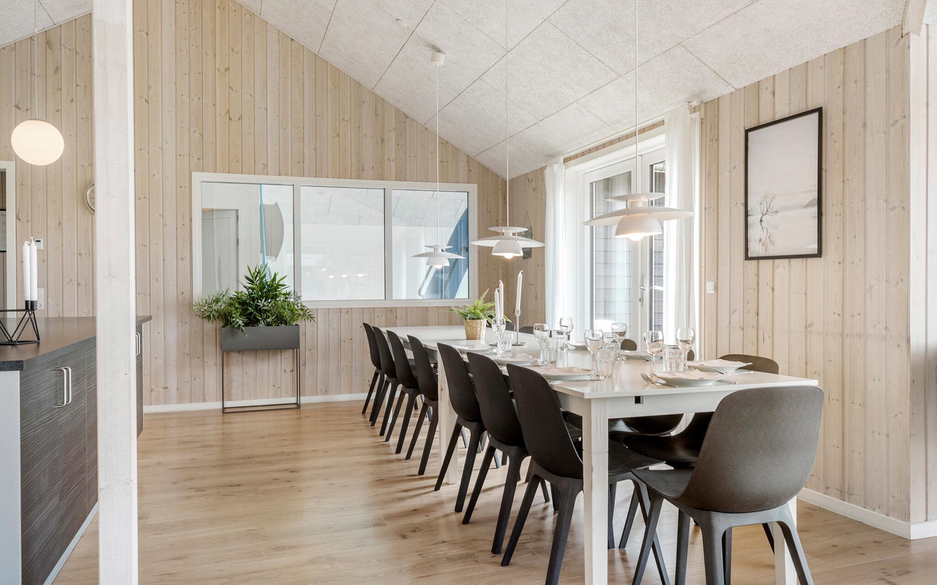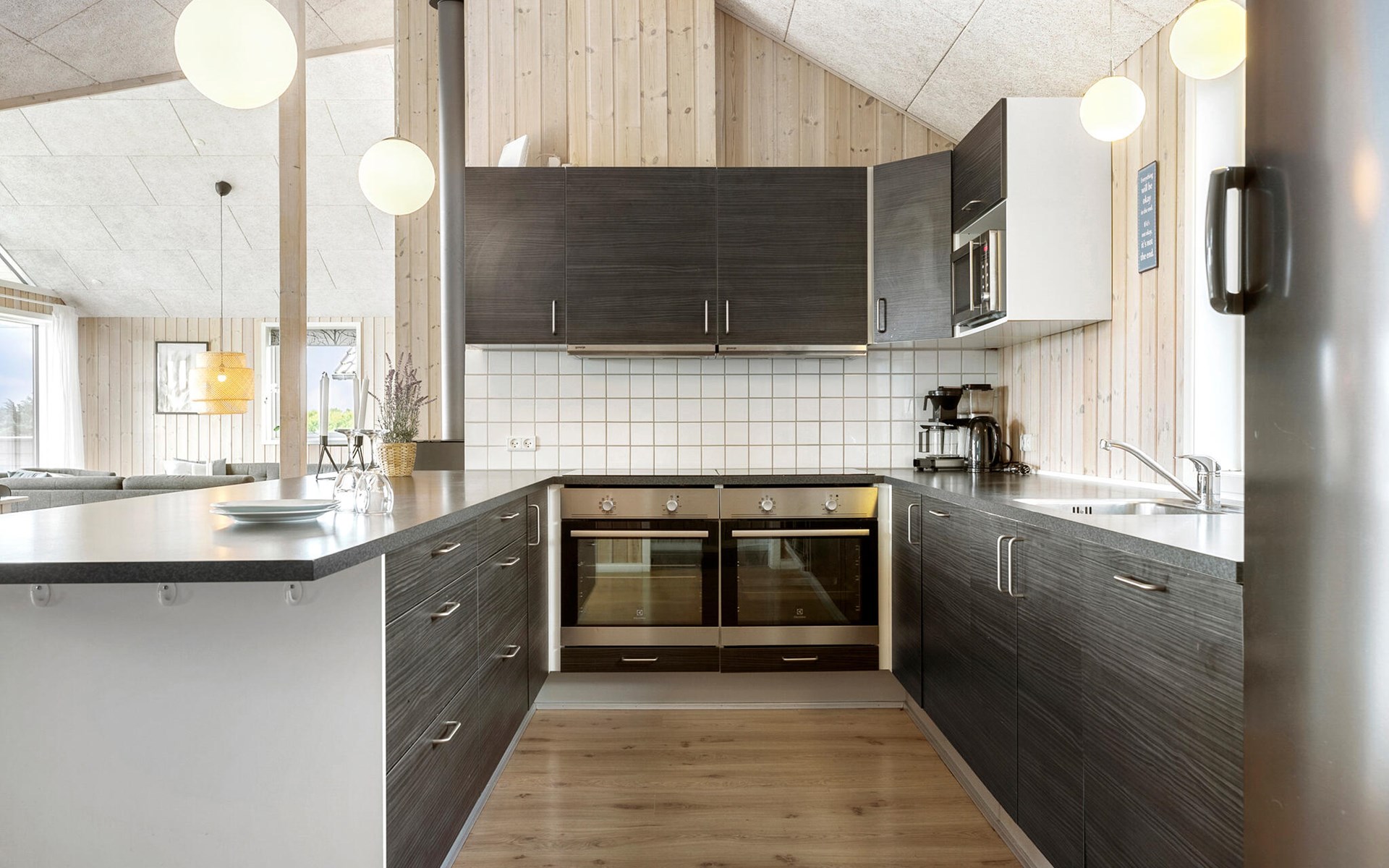 Verbringen Sie eine unvergessliche Auszeit in diesem Ferienhaus mit vielen Aktivitätsmöglichkeiten in der idyllischen Landschaft von Nr. Lyngby, nördlich von Løkken. Ihr Ferienhaus, das Platz für mehrere Familien oder eine größere Reisegruppe bietet, ist der ideale Ort für einen erholsamen Urlaub. Die modern und geräumig gestaltete Küche lädt zum gemeinsamen Kochen ein. Der Wohnbereich besticht durch große Fensterfronten, die viel Tageslicht hereinlassen und eine gemütliche Atmosphäre schaffen. Entspannen Sie auf den bequemen Sofas, spielen Sie Gesellschaftsspiele oder genießen Sie wohlige Abende am Kaminofen.