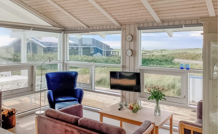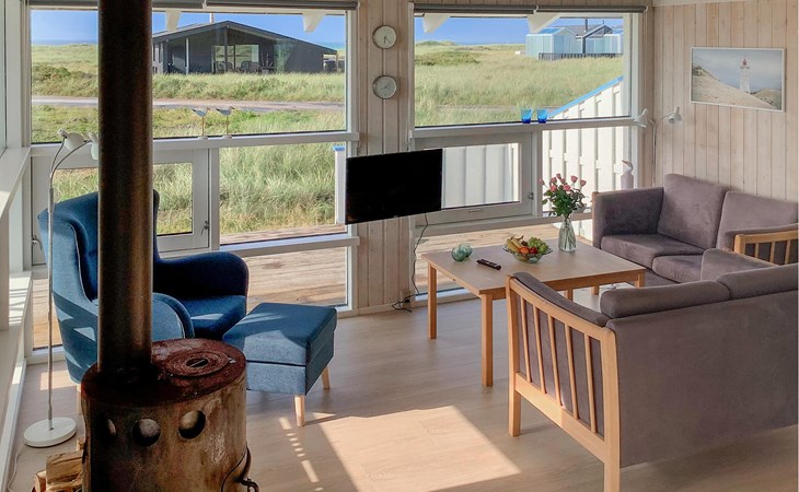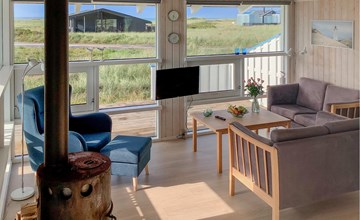 Verleben Sie schöne Urlaubstage in Ihrem charmanten und kompakten Ferienhaus, das dank seiner Lage und Ausstattung ideal für einen Natururlaub in Dänemark ist. Genießen Sie die Ruhe und lassen Sie den Alltag hinter sich. Genießen Sie die Wohlfühlatmosphäre im Innenbereich des Hauses. Der lichtdurchflutete Wohnbereich mit Panoramafenstern bietet einen herrlichen Ausblick auf die umliegende Dünenlandschaft. Lehnen Sie sich zurück auf den bequemen Sofas oder lesen Sie ein gutes Buch in der gemütlichen Leseecke. Der Kaminofen sorgt an kühleren Abenden für eine warme Atmosphäre.