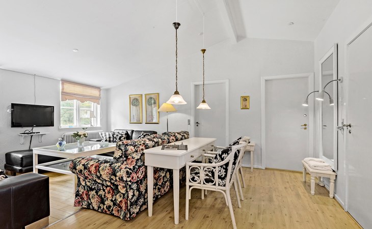 Auf dem Grundstück des Kokkedal Schlosses empfängt Sie dieses helle und einladende Ferienhaus.