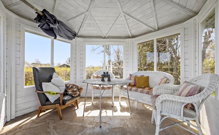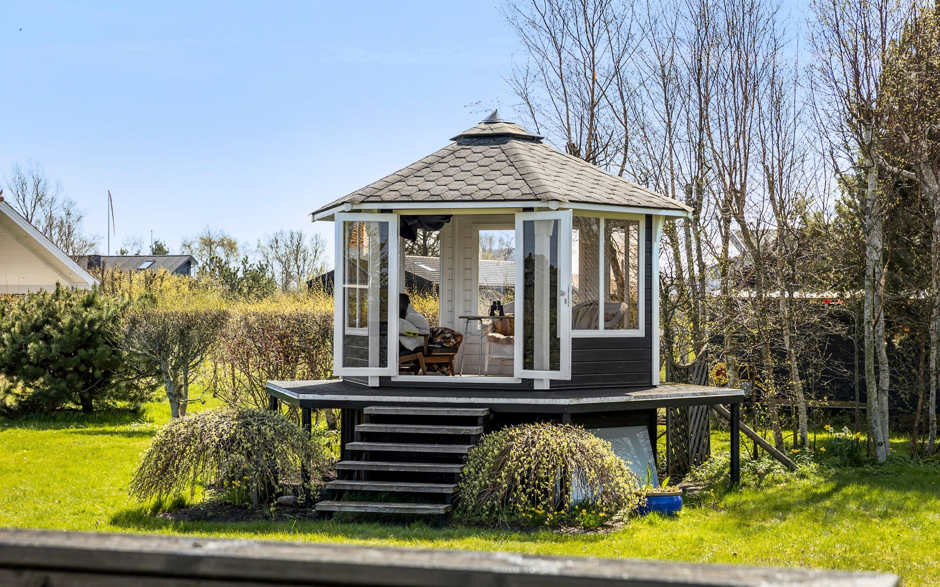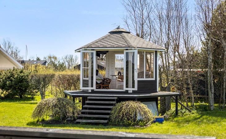 Genießen Sie Ihren Urlaub in diesem schönen Ferienhaus mit Blick auf das Meer und gemütlichen Gartenpavillon.