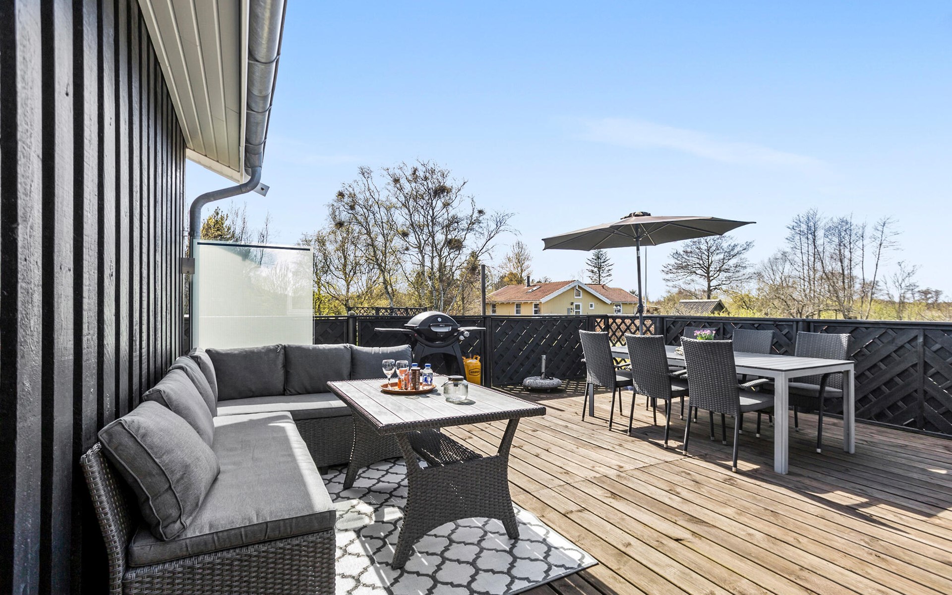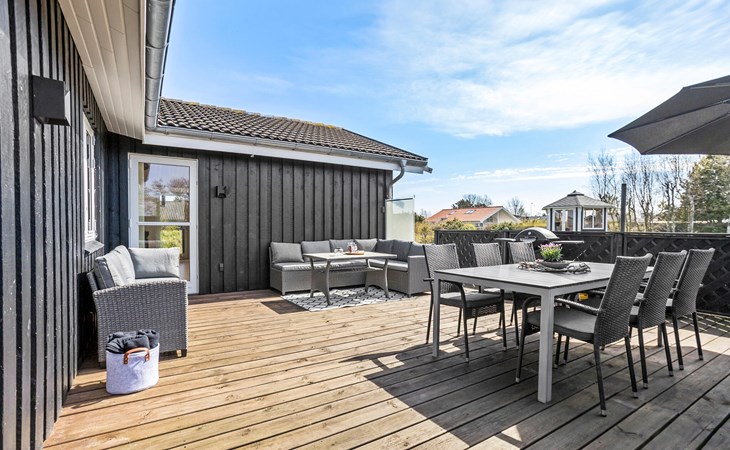 Treten Sie vom Wohnbereich auf die große Holzterrasse, die einen Großteil des Hauses umgibt. Legen Sie sich in die Sonne oder lesen entspannt ein Buch auf den Gartenmöbeln. Lassen Sie die grillmeister der Familie ein leckeres BBQ zubereiten und schauen Ihren Kindern beim Spielen im Garten zu. Am Abend können Sie sich in den schönen Panoramapavillon zurückziehen und beim Quatschen oder Kartenspielen viele Stunden verbringen.