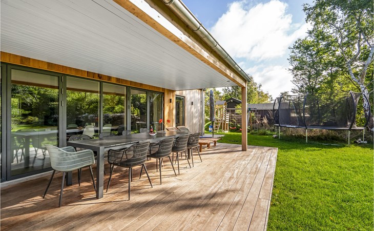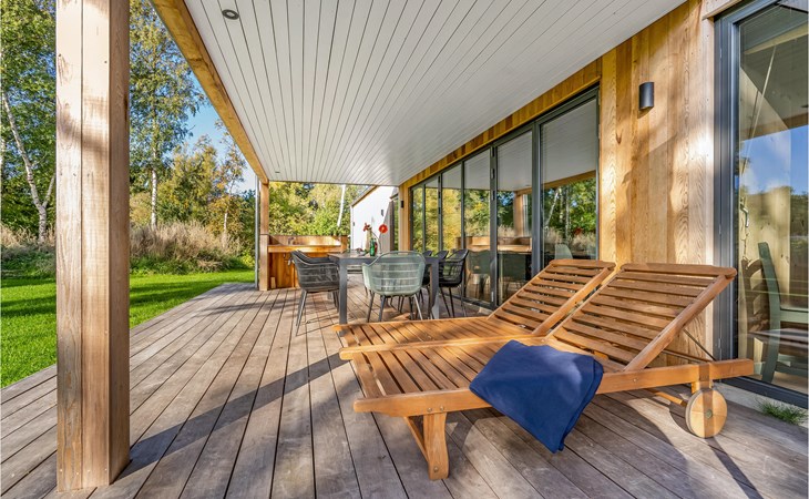 Genießen Sie Entspannung pur in diesem modernen Ferienhaus mit Whirlpool und Sauna.