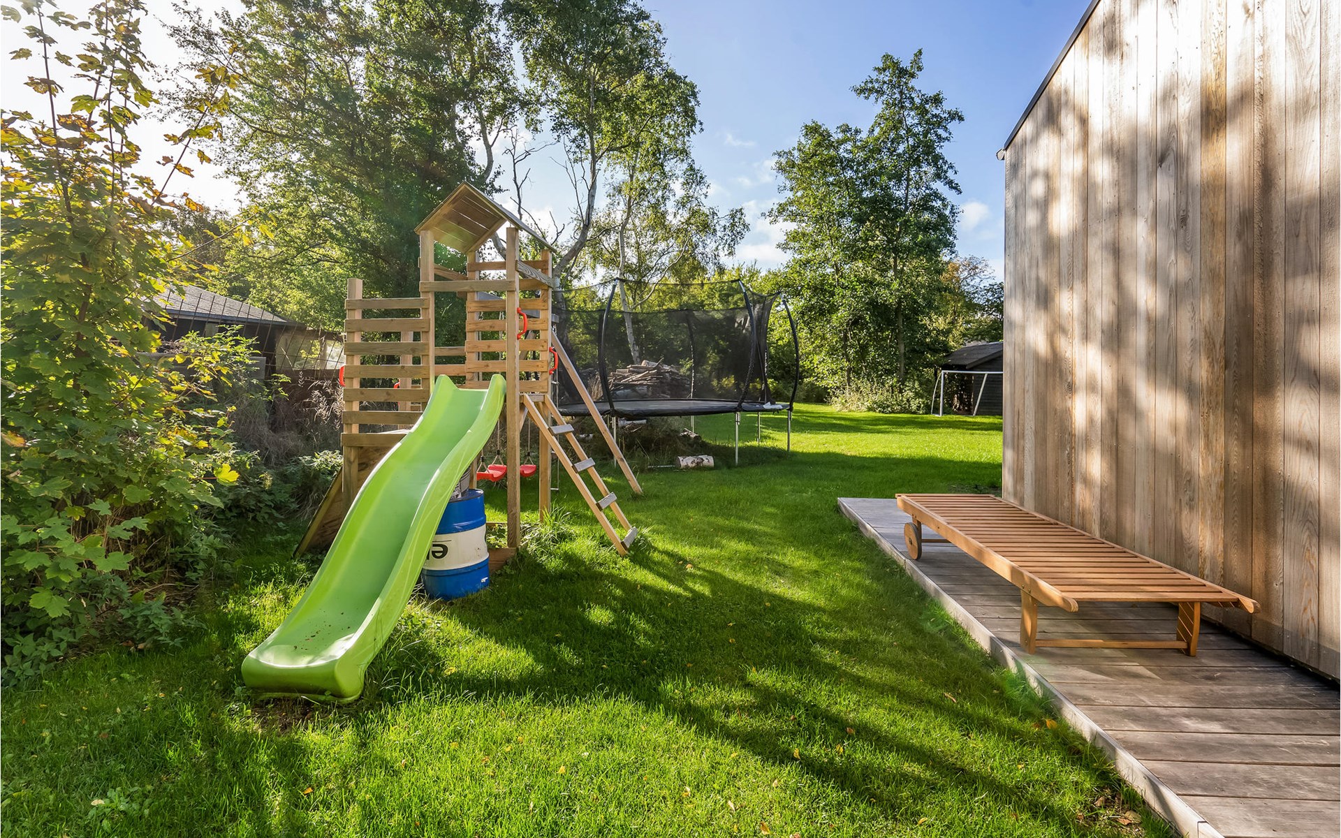 Auf dem offenen Naturgrundstück gibt es viel Platz für Aktivitäten im Freien. Bereiten Sie in der Außenküche gemeinsam die Mahlzeiten zu und verbringen Sie lange Abende am Lagerfeuer. Kinder finden hier Schaukel, Sandkasten und Rutsche vor. Den Strand erreichen Sie vom Ferienhaus zu Fuß, dort können Sie sommers wie winters eine wunderbare Zeit verbringen.