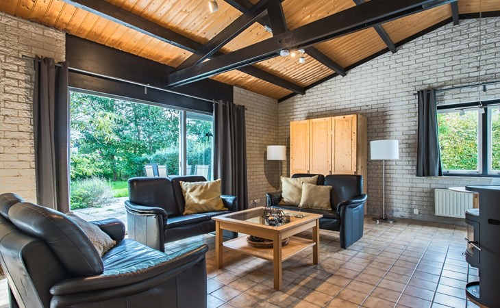 Das Wohnzimmer hat eine offene Küche und ist angenehm hell. Vom Wohnzimmer aus gelangt man auf die Terrasse mit komfortablen Gartenmöbeln in den geschützten Garten. Das Wohnzimmer ist mit einer Sitzecke, einem behaglichen Kaminofen, Flachbild-Digital-TV mit internationalem Senderangebot, DVD-Player und einer iPod Dockingstation ausgestattet. Zur komplett eingerichteten Küche gehören unter anderem eine Mikrowelle, ein Geschirrspüler, zwei Kühlschränke und eine Nespresso Kaffeemaschine.