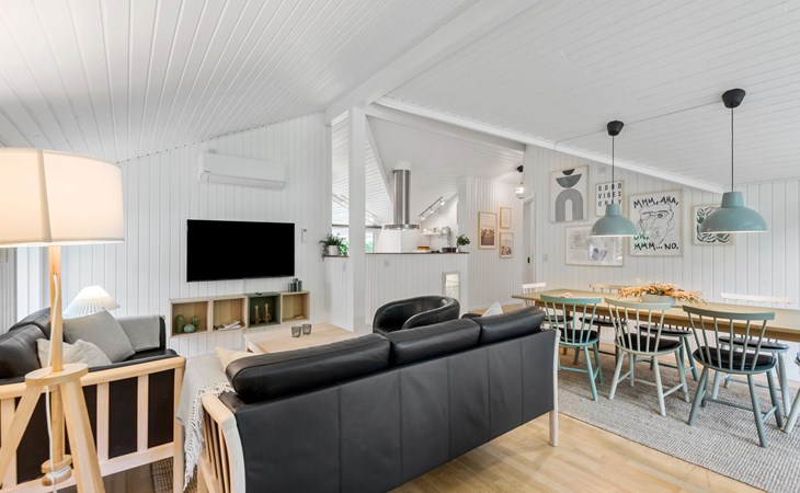 Freuen Sie sich auf Ihre Auszeit vom Alltag und genießen Familienzeit und Entspannung in diesem hellen und gemütlichen Ferienhaus. Durch die große Fensterfassade im Wohnzimmer wird der Wohnraum durch das Tageslicht erhellt und lädt Sie zum gemeinsamen Kochen in der gut ausgestatteten Küche sowie Spielen am Esstisch ein. Genießen Sie auch Stunden im Wellnessbereich mit Bädern in der Whirlpool-Badewanne oder in der Sauna.