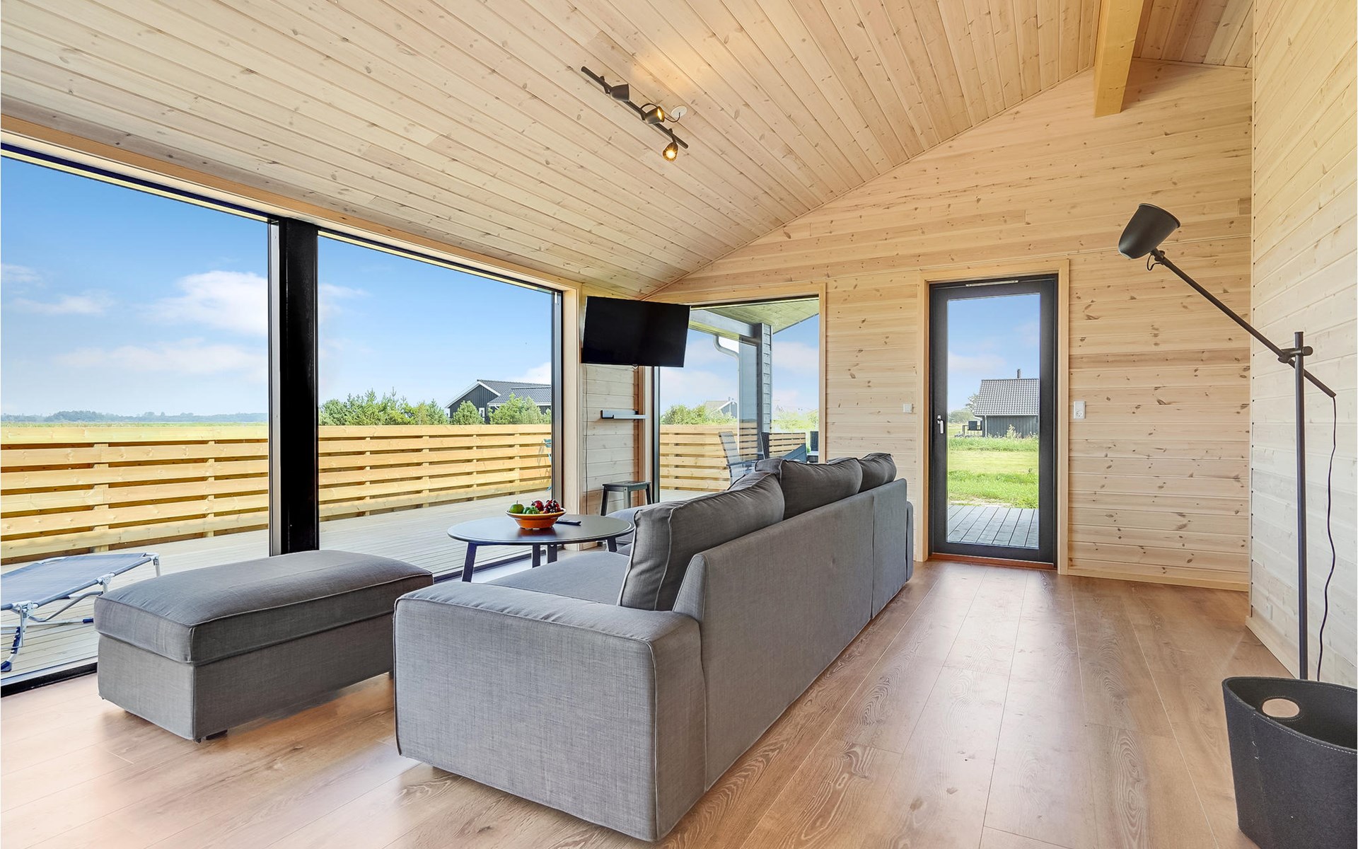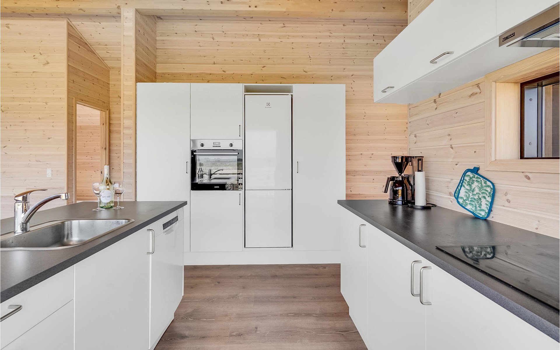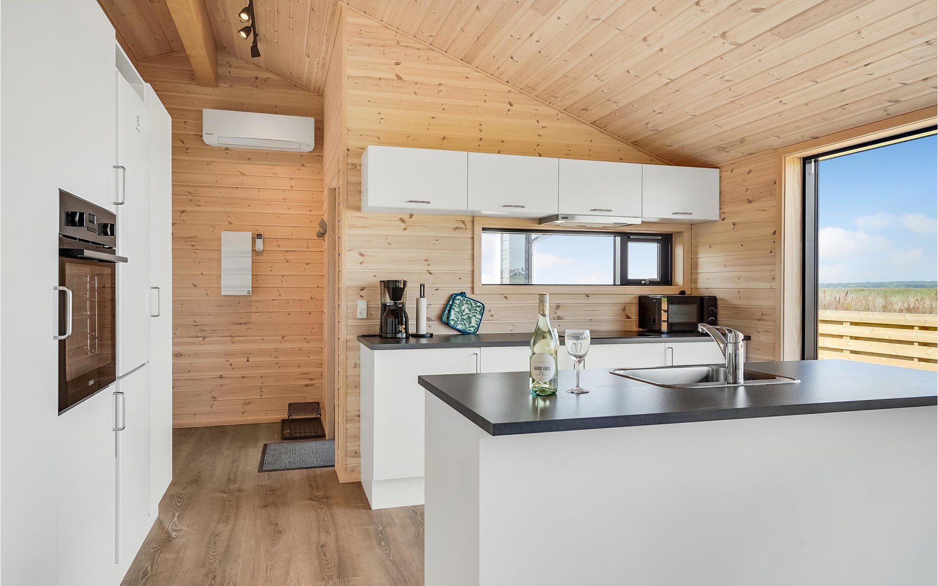 Willkommen in diesem einladenden Ferienhaus, das mit viel Liebe zum Detail eingerichtet und ausgestattet wurde. Den Mittelpunkt des Hauses bildet der helle Wohnbereich mit offener Küche, schönem Essplatz und Sofaecke, wo Sie zusammen die Mahlzeiten zubereiten, auf dem Sofa entspannen und die Gesellschaft der anderen genießen können. Vom Esstisch und dem Sofa bietet sich Ihnen ein weiter Blick auf die Landschaft durch Panoramafenster ohne Gardinen.