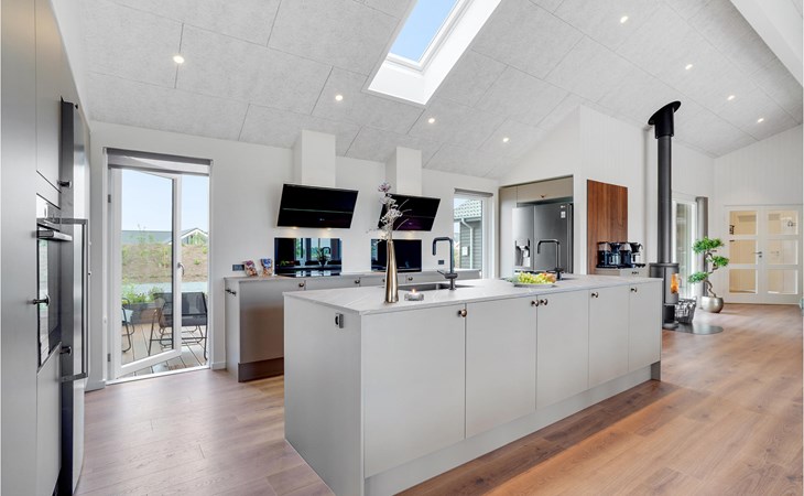 In der Umgebung von Hostrup Strand gibt es viele spannende Attraktionen zu besichtigen - z. B. die mittelalterliche Burg Spøttrup, den Blumenpark Jesperhus, das Freilichtmuseum Hjerl Hede, die Kalksteinbrüche von Daugbjerg, das B&O-Museum in Struer, den Nationalpark Thy, Venø mit Dänemarks kleinster Kirche und die Limfjordinsel Fur, wo man auf Fossiliensuche gehen und Fur Bryghus & Restaurant besuchen kann. Die Gegend lädt auch zu abwechslungsreichen Wander-, Lauf- und Radtouren ein, und die Venø-Bucht ist bei Anglern, Kite- und Windsurfern beliebt. Am Strand können Sie frische Austern und Krabben für eine köstliche Mahlzeit pflücken. Sowohl Hostrup Strand als auch Gyldendal Strand haben klares, sauberes Badewasser und einen eigenen Badesteg, und der Sonnenuntergang über Venø und Thyholm ist absolut atemberaubend.