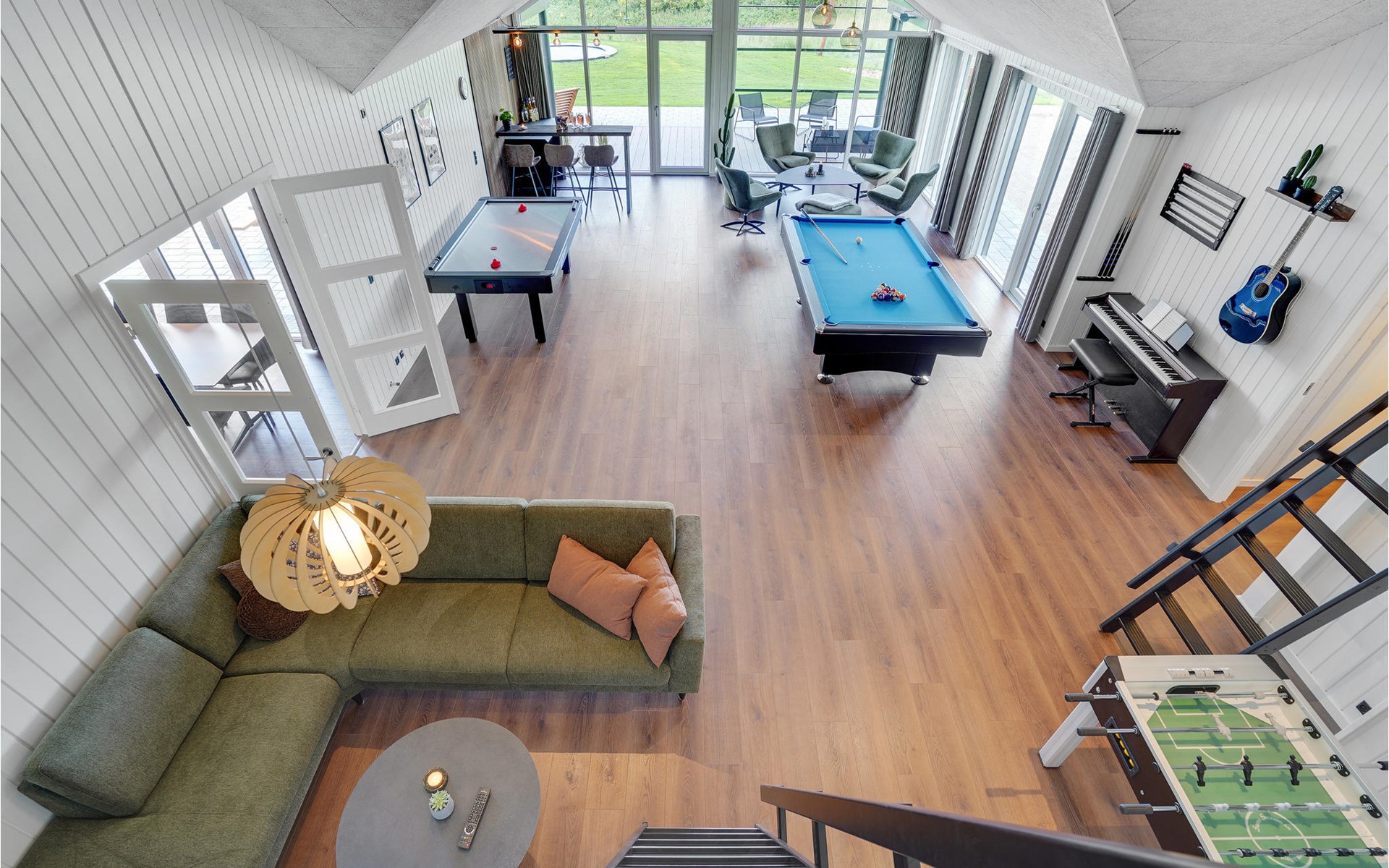 Suchen Sie eine komfortable Unterkunft, die Ihnen viel Platz bietet und ein vielseitiges Unterhaltungsprogramm? Willkommen! Dann sind Sie hier genau richtig. Das moderne Ferienhaus ist ideal für Ihre Großfamilie oder befreundete Familien bis zu 30 Personen! Genießen Sie Ihren Aufenthalt in Hostrup, egal zu welcher Jahreszeit oder Wetterlage, denn langweilig wird es Ihnen hier nicht. Im Inneren des Ferienhauses können Sie zusammen musizieren, Turniere im Tischfußball oder Billard austragen und das alles im großen Wohnraum, sodass alle daran teilhaben können. Ebenso wetterunabhängig können Sie den Swimmingpool genießen. Legen Sie sich in den Whirlpool, während Ihre Kinder ihre Freude beim Rutschen und Ballspielen haben.
