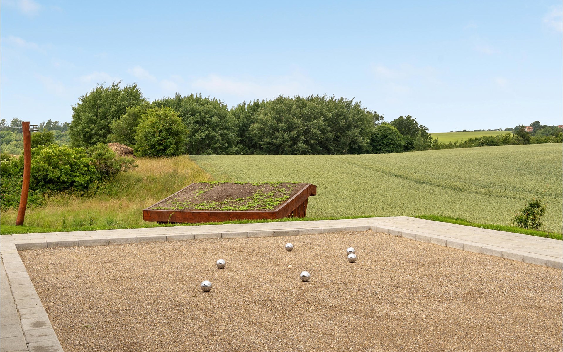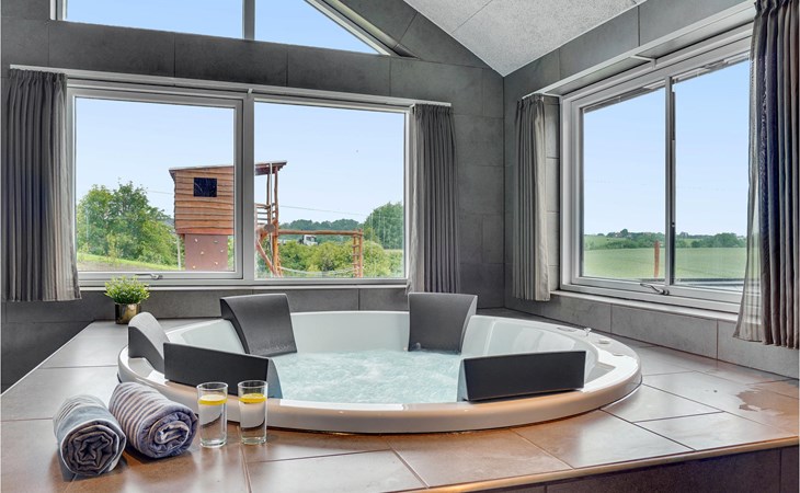 Im Garten geht das Abenteuer für Ihre Kinder weiter. Ein umfangreicher Spielplatz erwartet Ihre Kinder. Von Wippen, über Schaukeln, Hüpfen und im Sand spielen, ist alles dabei. Während Ihre Kinder sich austoben, können Sie sich im zweiten Whirlpool im Freien entspannen und den Blick in die Natur genießen. Sie können aber auch eine Runde Boule spielen, denn ein Platz liegt direkt neben dem Haus. Sollten ein paar Gäste zu viel Trubel im Haus sein, gibt es auch die Möglichkeit im eigenen Shelter, mit Blick auf die Felder zu übernachten.
