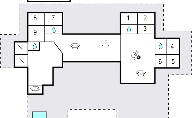 Zwischen der Nordsee und dem Ringkøbing Fjord gelegen, ist dieses gut ausgestattete Ferienhaus der perfekte Ort für einen fantastischen Urlaub. Es bietet viel Platz für mehrere Familien oder eine größere Reisegruppe. Das Haus ist hell und modern mit stilvollen Einrichtungslösungen, die Ihren Aufenthalt besonders komfortabel machen. Genießen Sie stundenlangen Badespaß im Poolbereich, spielen Sie eine Partie Tischtennis oder Billard im Aktivitätsraum und machen Sie später das Kochen zu einem gemeinsamen Projekt in der stilvollen Küche. Nach einem langen Spaziergang an der frischen Luft können Sie sich in der Sauna oder im Whirlpool aufwärmen. Und abends kann man es sich auf dem Sofa vor dem gemütlichen Holzofen gemütlich machen.