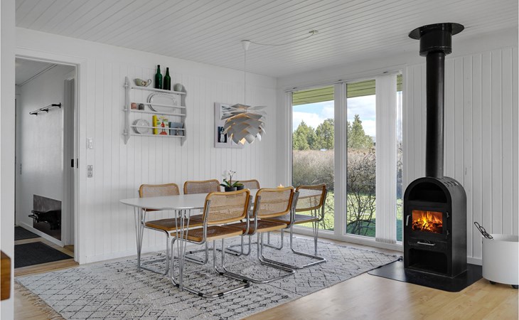 Das helle Haus mit moderner Einrichtung erwartet seine Gäste in Følle Strand. Es bietet 3 Schlafzimmer, von denen 2 mit bequemen Doppelbetten und eines mit 2 Einzelbetten ausgestattet ist. Somit finden hier 6 Personen Platz für einen erholsamen Urlaub zu jeder Jahreszeit. Machen Sie es sich an kühleren Abenden am Kaminofen bequem und genießen Sie die gemeinsame Zeit.