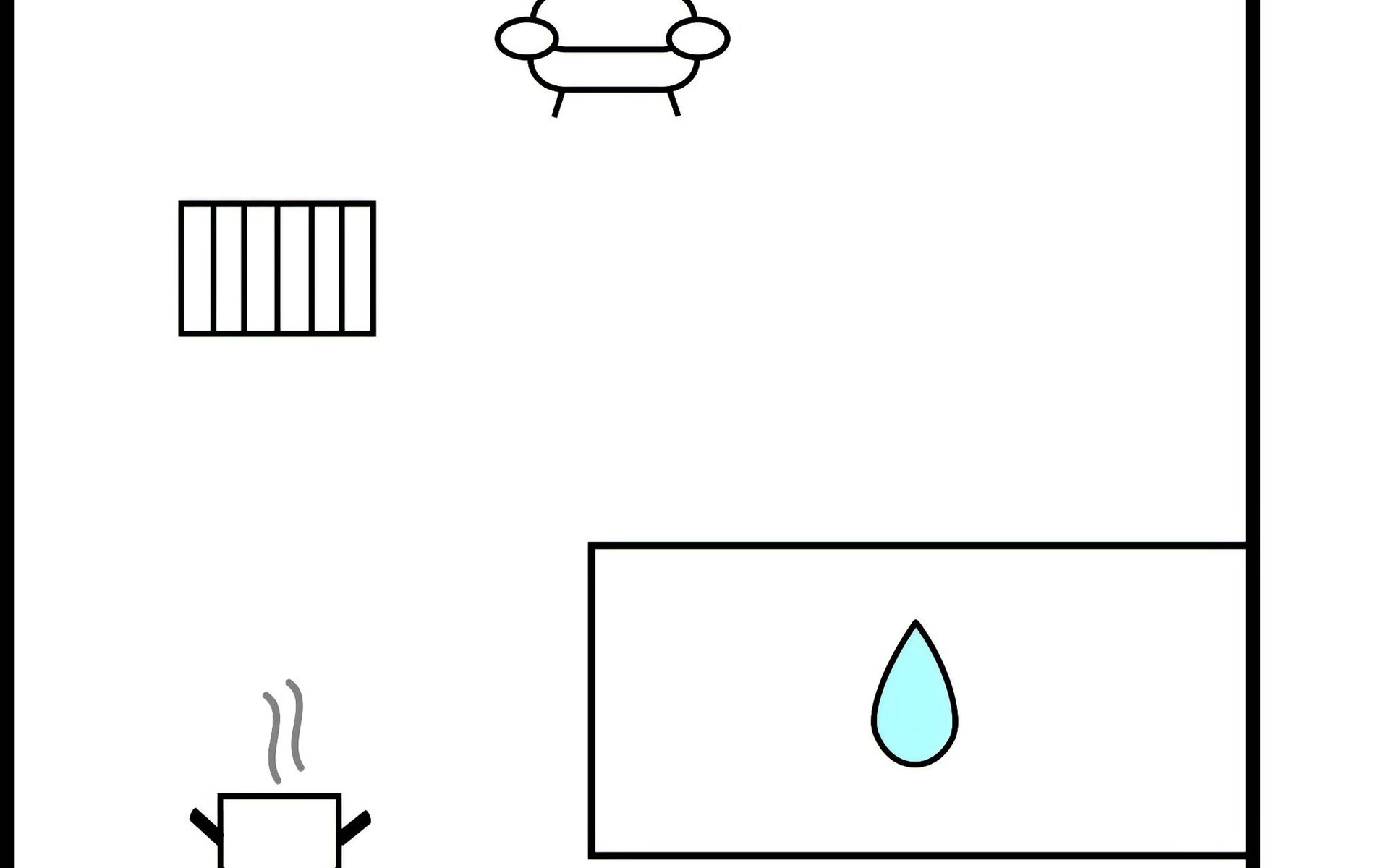 Die Wohnung ist mit 2 Schlafzimmern ausgestattet, Wohnzimmer in offener Verbindung mit Küchenzeile, die einen Mini-Ofen, Waschbecken und 1 Kochfeld hat. Darüber hinaus gibt es ein Badezimmer mit Dusche. Vom Wohnzimmer und der Küche hat man einen fantastischen Blick über die Felder zum Ringkøbing-Fjord und zum Surferparadies am Bagger-Damm. Die Wohnung befindet sich im 1. Stock und ist daher nicht für Menschen mit Gehbehinderung geeignet.
