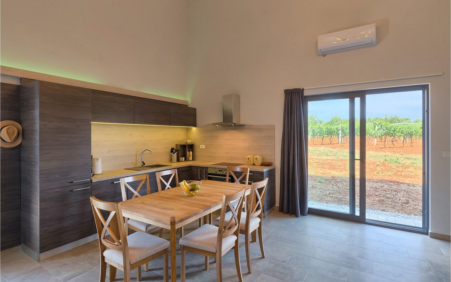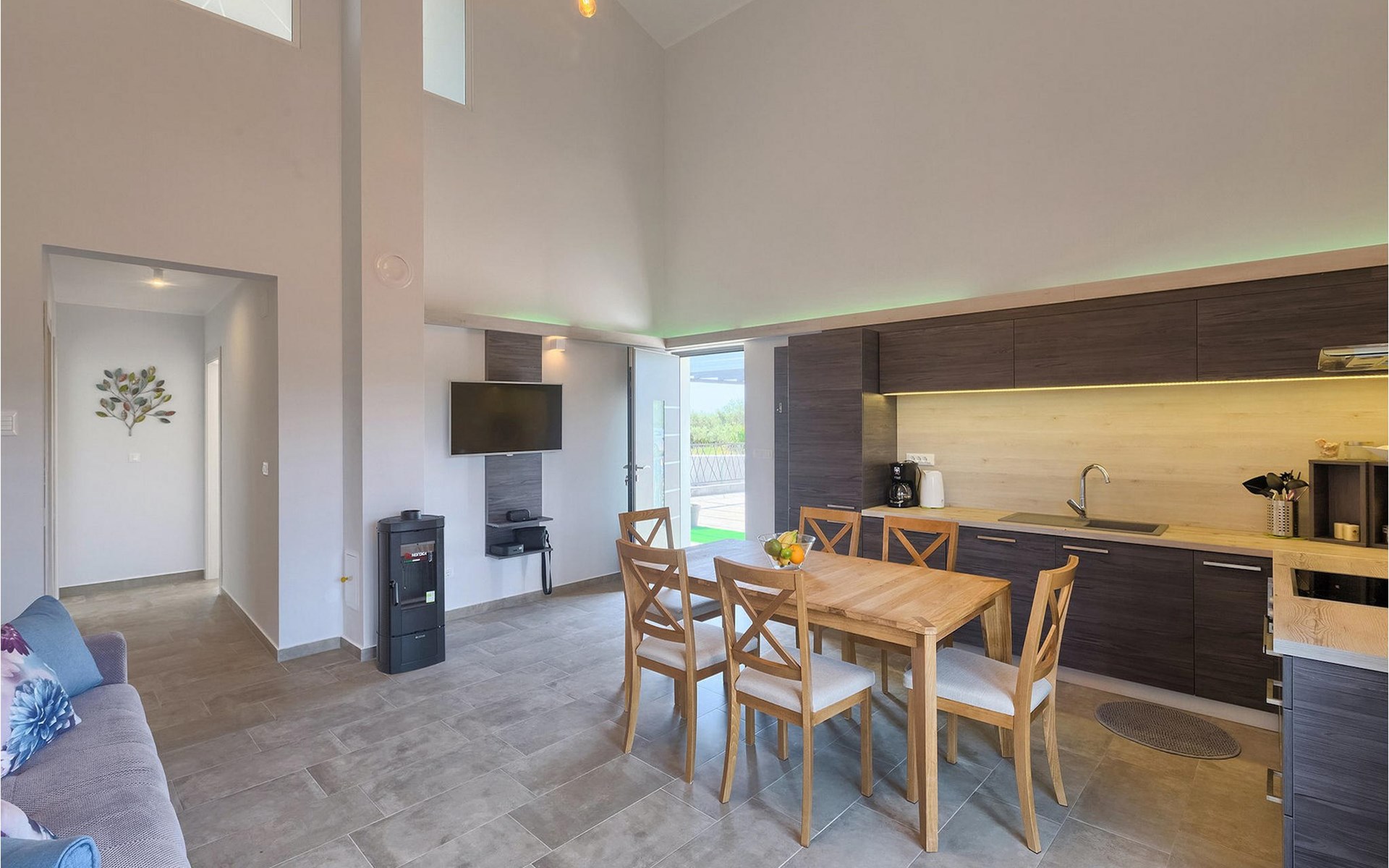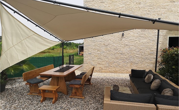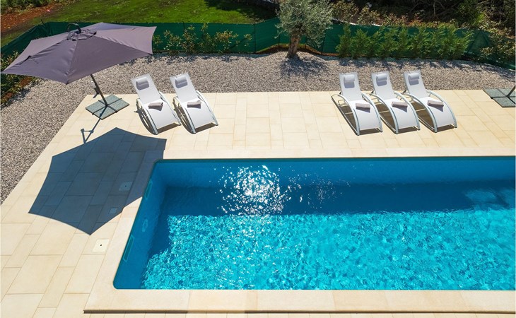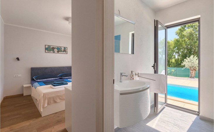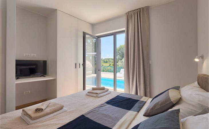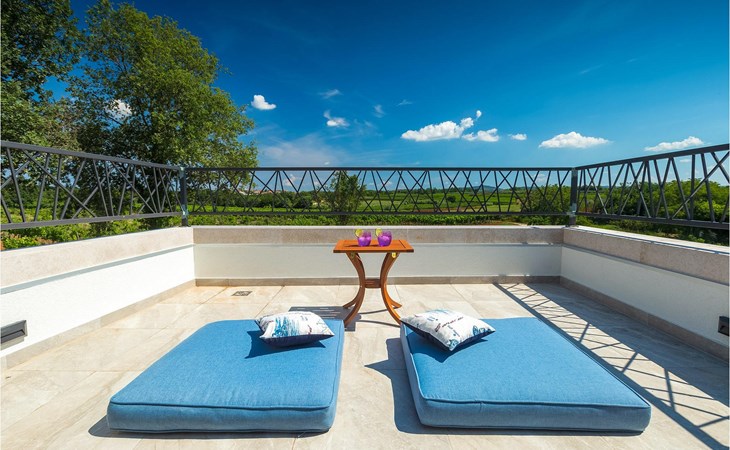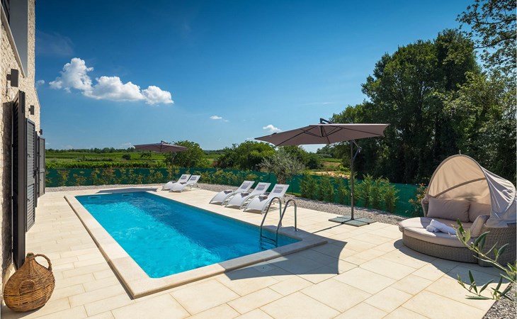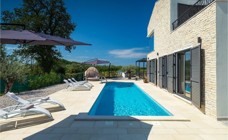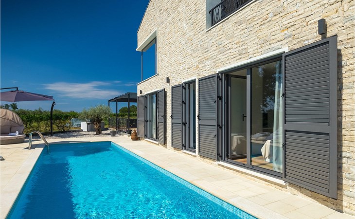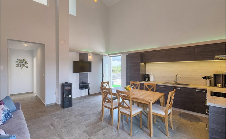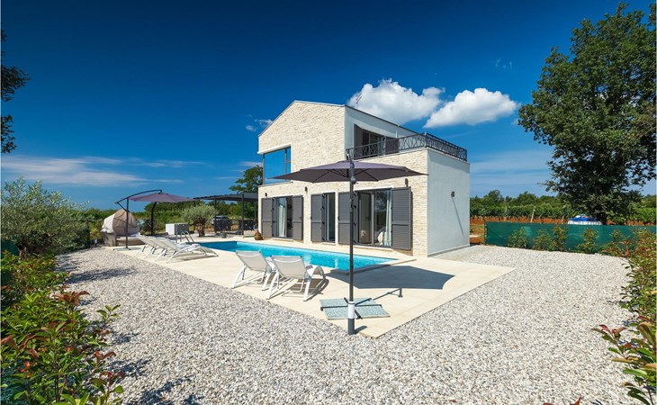 Villa Libra ist eine moderne Villa, die perfekt auf zwischen den Feldern im Hinterland von Novigrad gelegen ist. Es gibt keine anderen Häuser in der unmittelbaren Nachbarschaft, so dass Sie Ihre Privatsphäre haben werden. Der Innenbereich ist in zwei Etagen aufgeteilt. Das Erdgeschoss besteht aus dem Wohn-Essbereich und der Küche. Dieser Bereich hat eine hohe Decke, was eine großzügige Atmosphäre schafft.