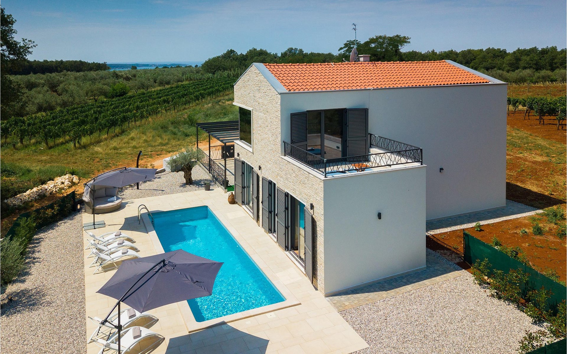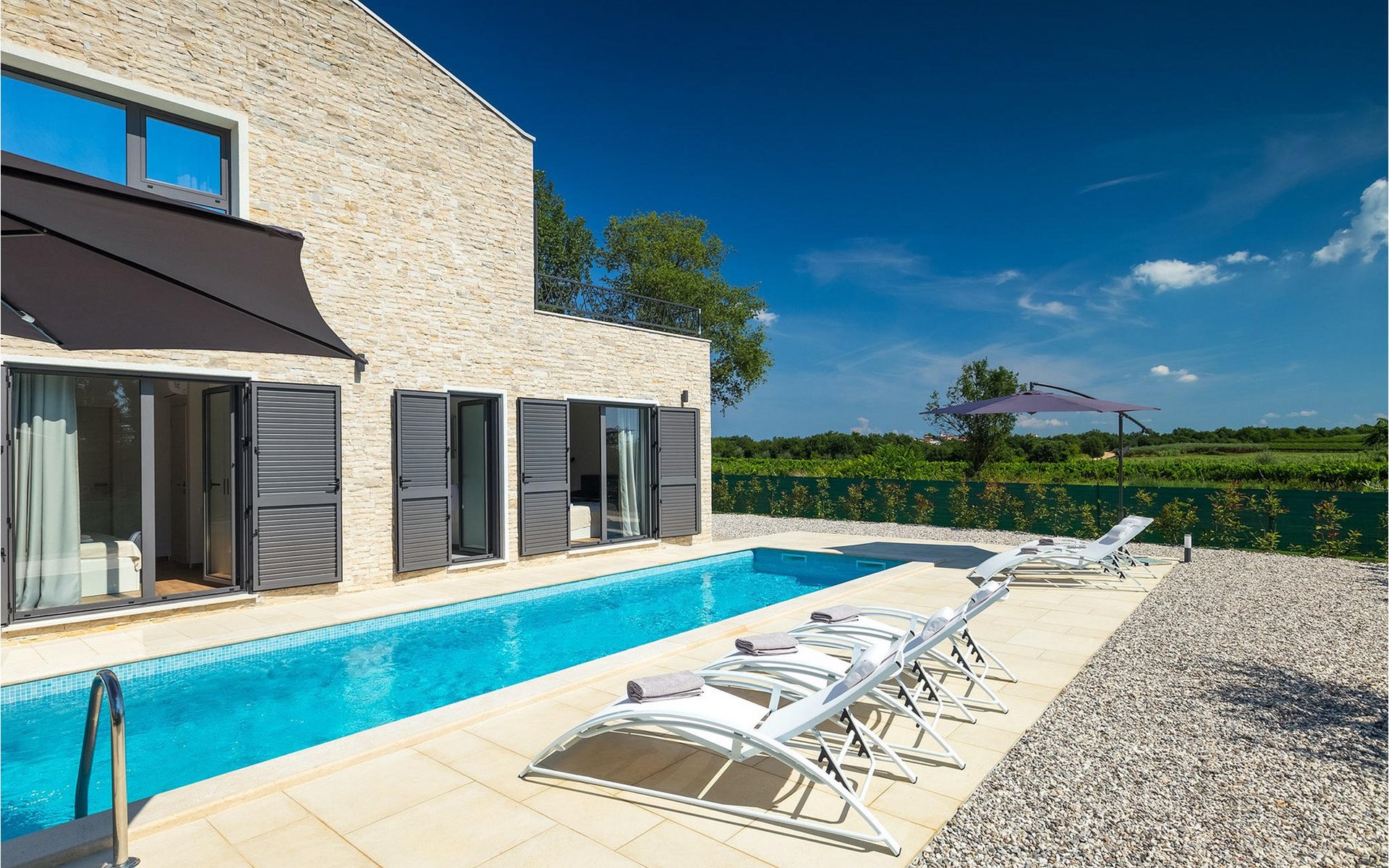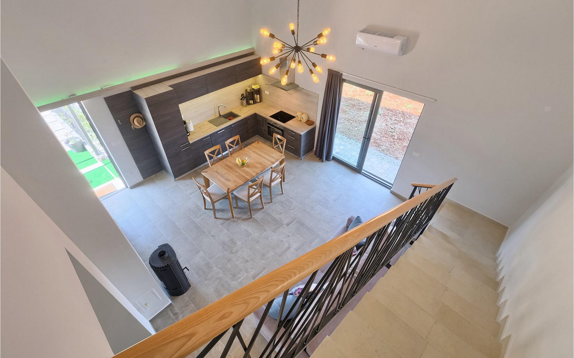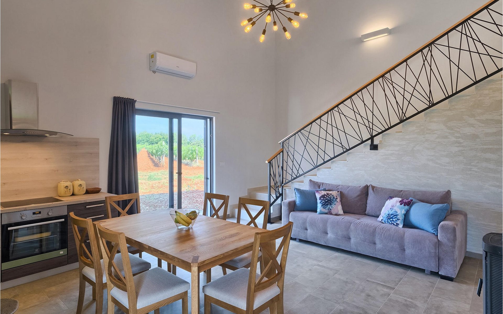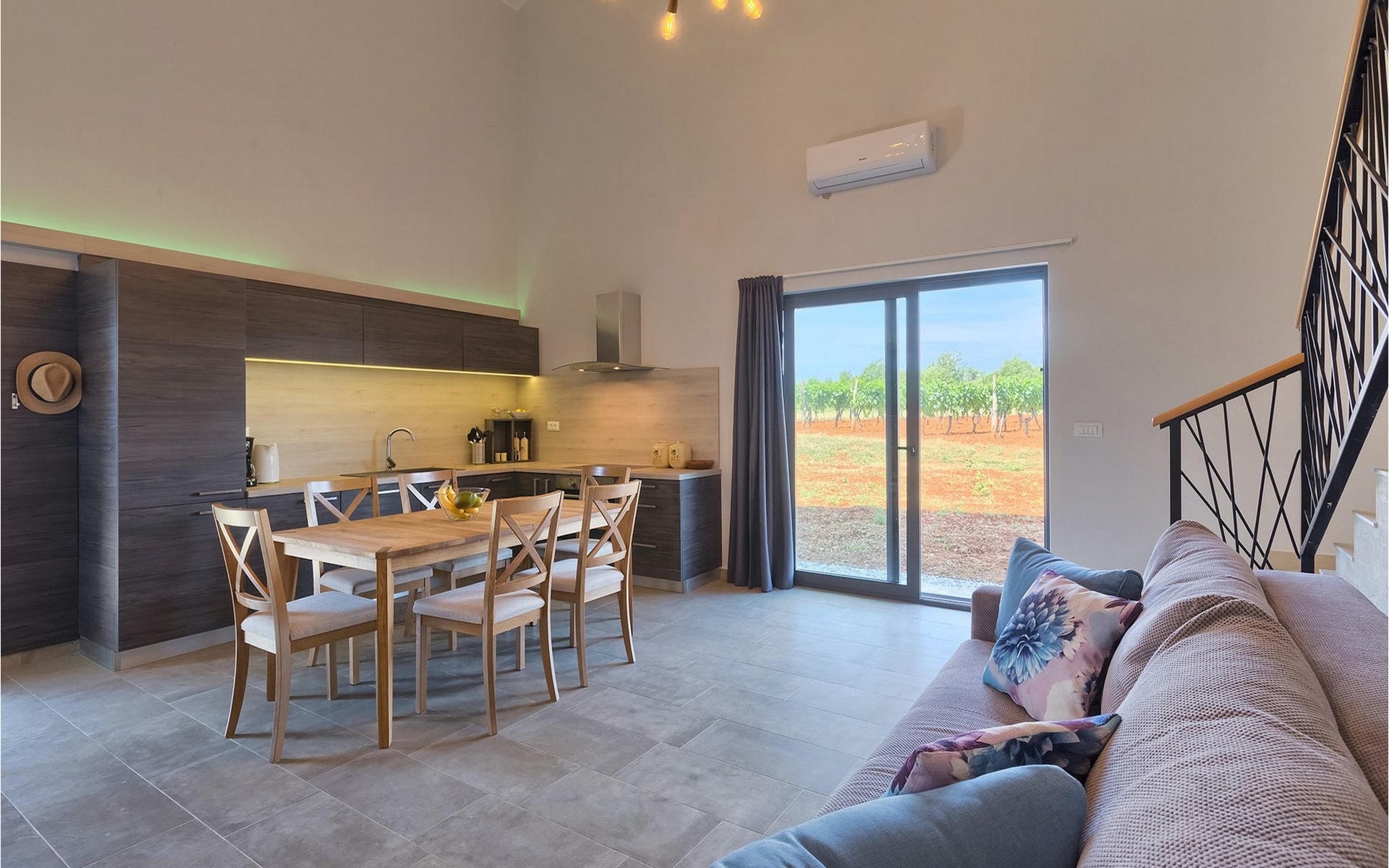 Villa Libra ist eine moderne Villa, die perfekt auf zwischen den Feldern im Hinterland von Novigrad gelegen ist. Es gibt keine anderen Häuser in der unmittelbaren Nachbarschaft, so dass Sie Ihre Privatsphäre haben werden. Der Innenbereich ist in zwei Etagen aufgeteilt. Das Erdgeschoss besteht aus dem Wohn-Essbereich und der Küche. Dieser Bereich hat eine hohe Decke, was eine großzügige Atmosphäre schafft.