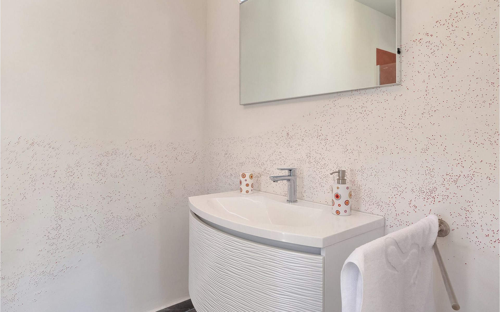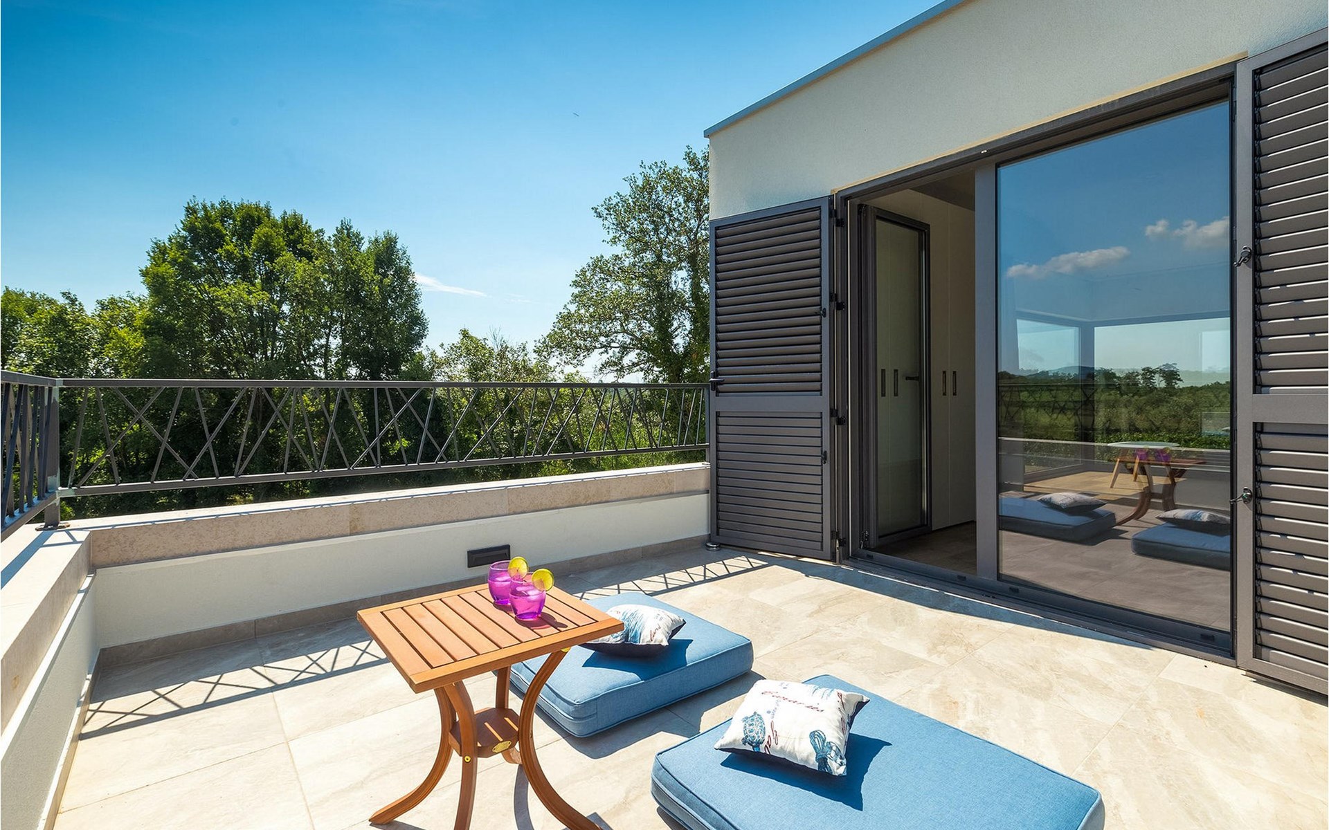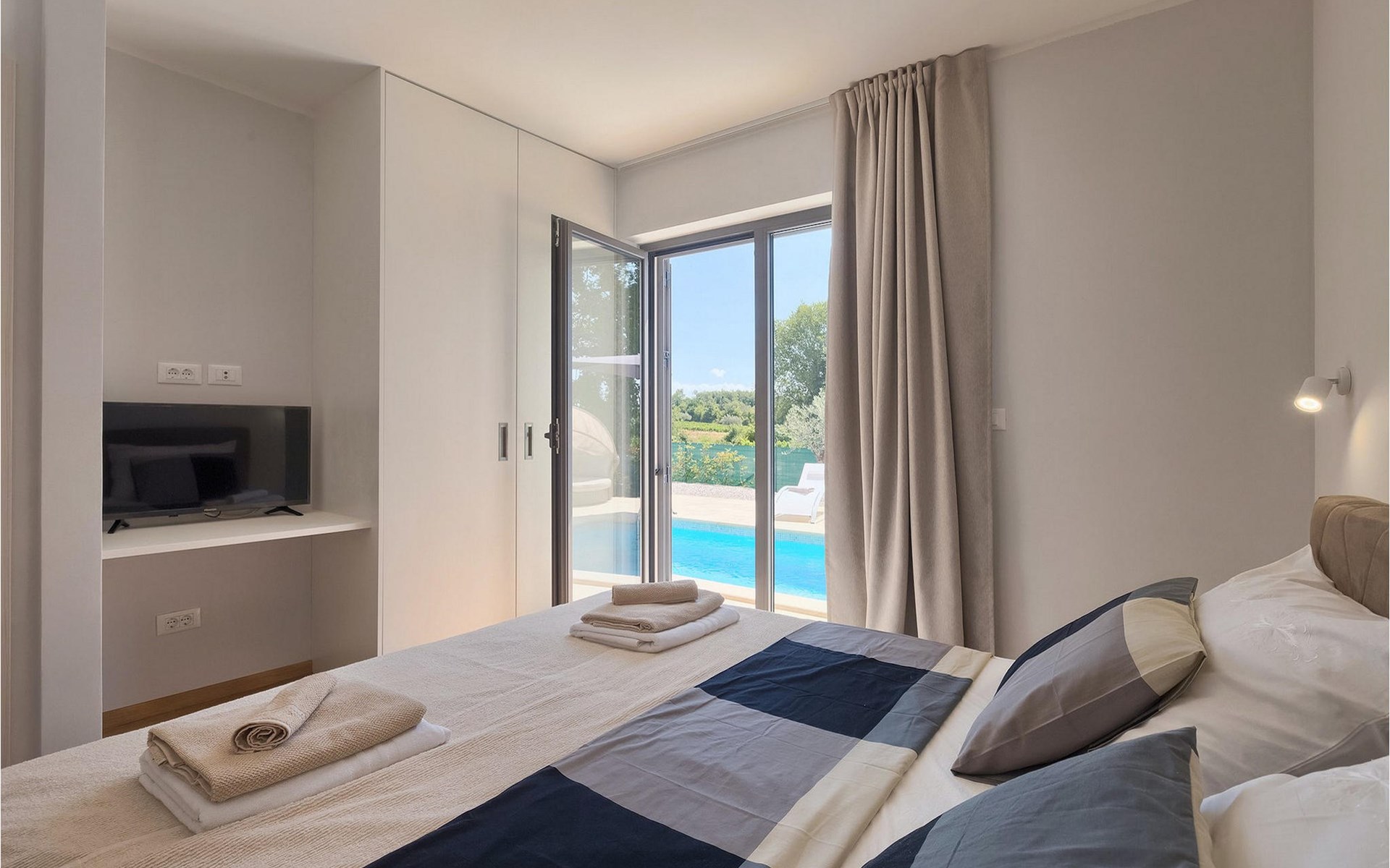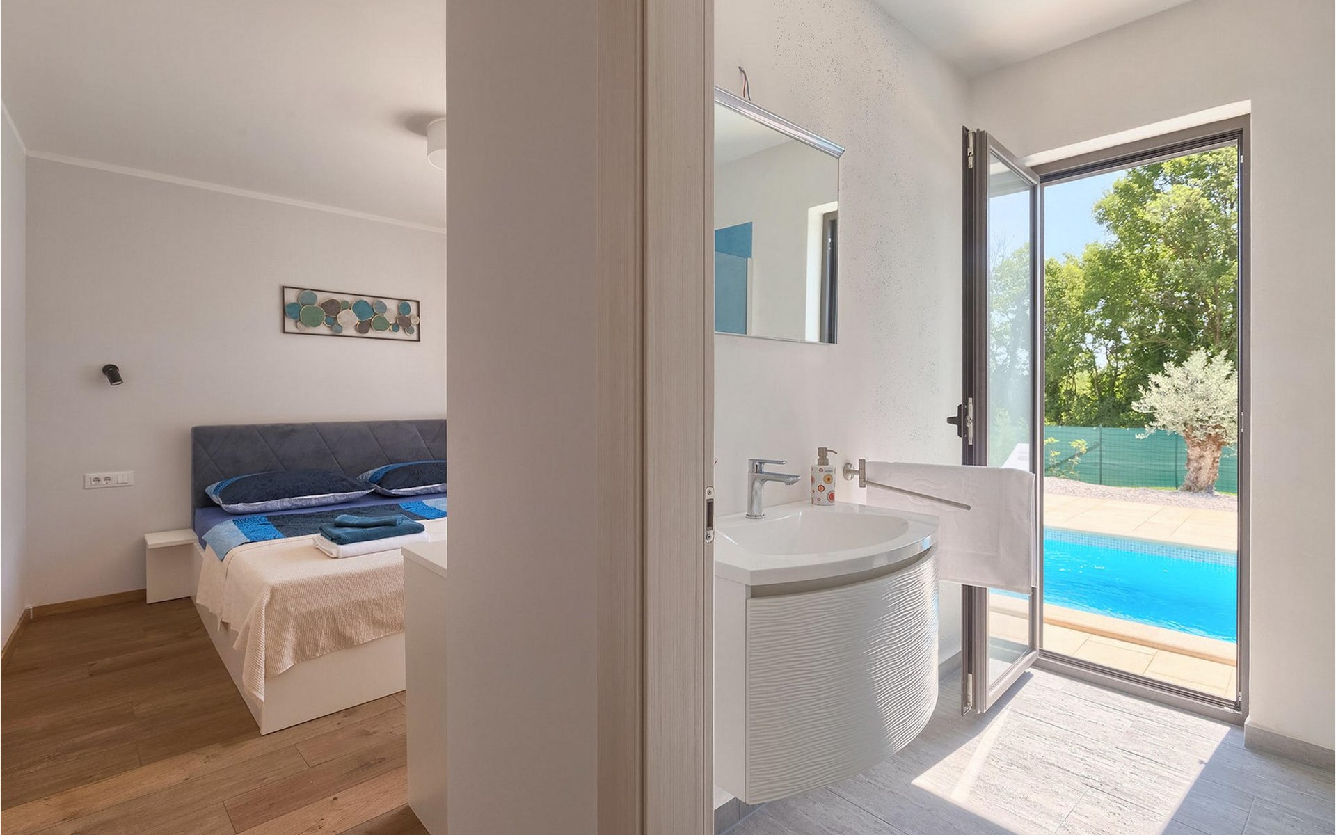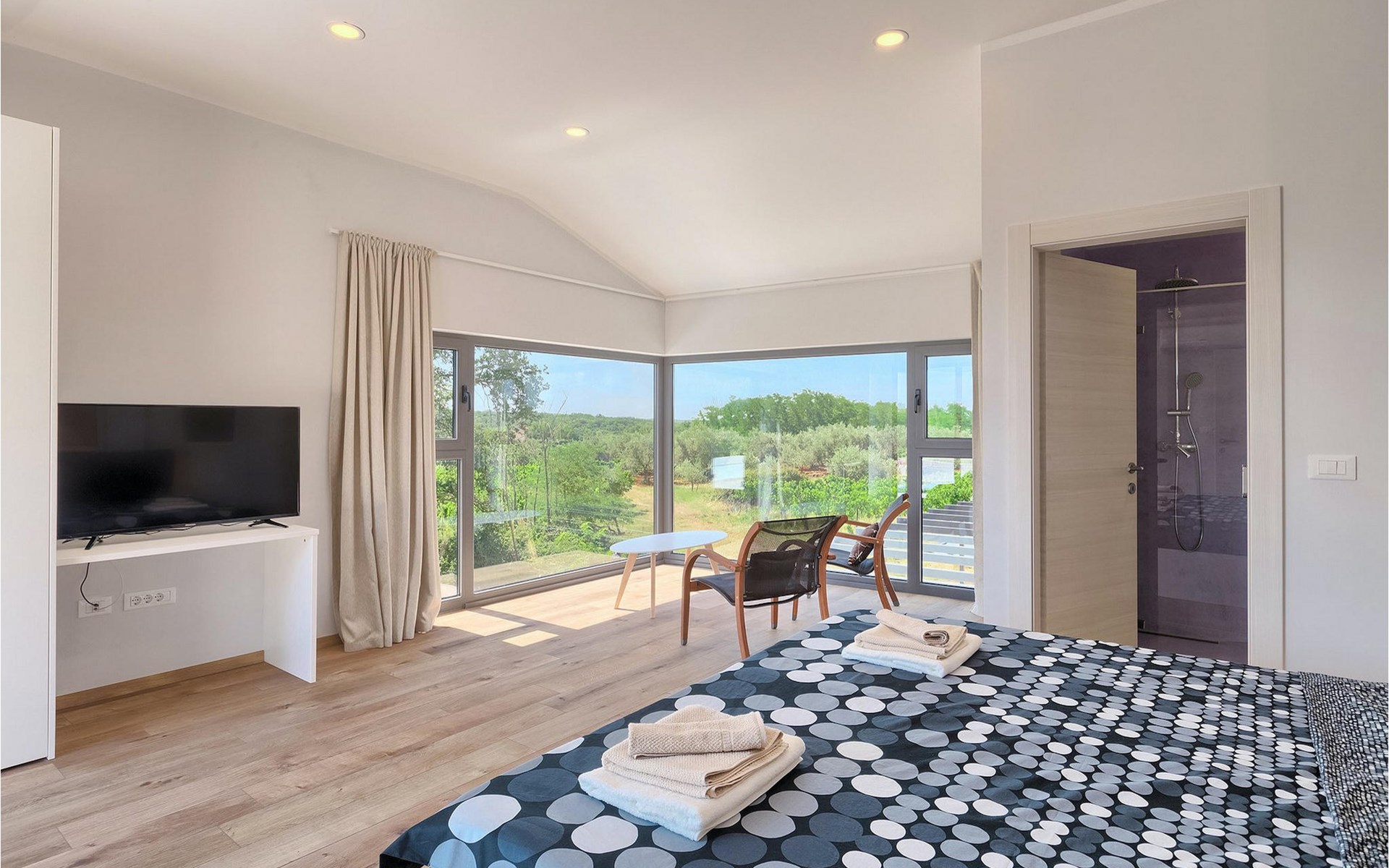 Villa Libra ist eine moderne Villa, die perfekt auf zwischen den Feldern im Hinterland von Novigrad gelegen ist. Es gibt keine anderen Häuser in der unmittelbaren Nachbarschaft, so dass Sie Ihre Privatsphäre haben werden. Der Innenbereich ist in zwei Etagen aufgeteilt. Das Erdgeschoss besteht aus dem Wohn-Essbereich und der Küche. Dieser Bereich hat eine hohe Decke, was eine großzügige Atmosphäre schafft.