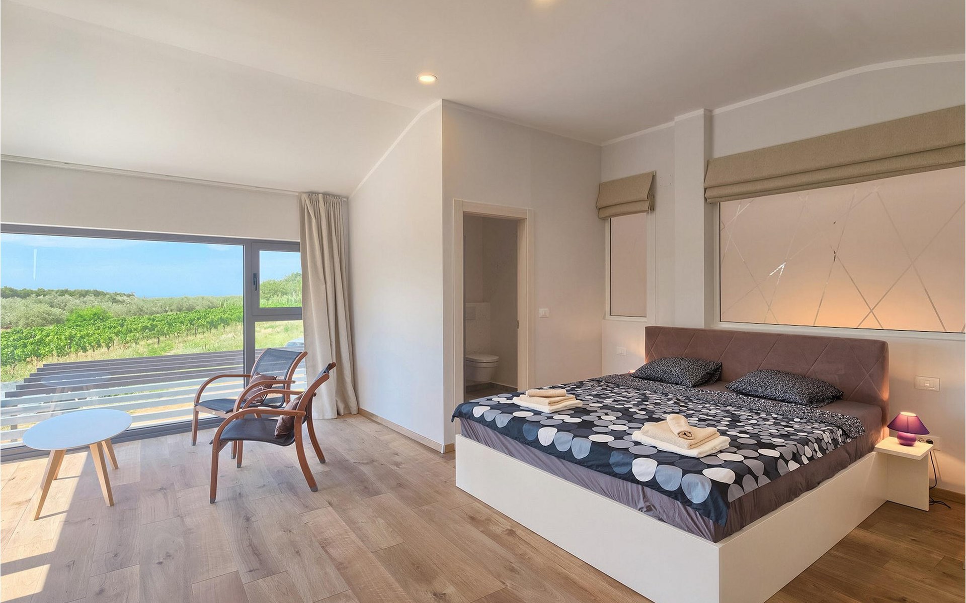 Den Gästen stehen auch kostenloses Wifi. 2 private Parkplätze und Klimaanlagen zur Verfügung.Brtonigla, eine kleine Stadt, bietet einen etwas anderen Urlaub. Die Stadt mit reicher Tradition, die in den Weinbergen beginnt, sich in Weinkellern fortsetzt und schließlich am reichlichen Tisch endet, ist bekannt für Weinwege und herrliches Olivenöl. Zahlreiche Weinberge und Olivenhaine führen zu unberührten Wiesen und Wäldern, weit weg vom Gedränge des modernen Großstadtlebens. Familienkeller und Verkostungsräume laden Sie dazu ein, die authentische Kraft des lokalen Lebensweise zu entdecken. Die Stadt bietet das Beste des istrischen Landesinneren - Naturparks und Höhlen, reiche Flora und Fauna, malerische Hügel, aber auch Kultur - Kirchen, Kapellen und archäologische Stätten. Eine Reihe von Veranstaltungen finden in Brtonigla statt, von denen die wichtigsten das Schokoladen- und Weinfest, das Istrische Malvazija-Festival, Dani gljiva ("Tage der Pilze") oder im Sommer das Fest des Hl. Rochus und etno-Manifestationen. Von Brtonigla aus ist es leicht, den ersten kroatischen Wasserpark Istralandia zu erreichen, aber auch verschiedene schöne Strände und die Stadt Novigrad.