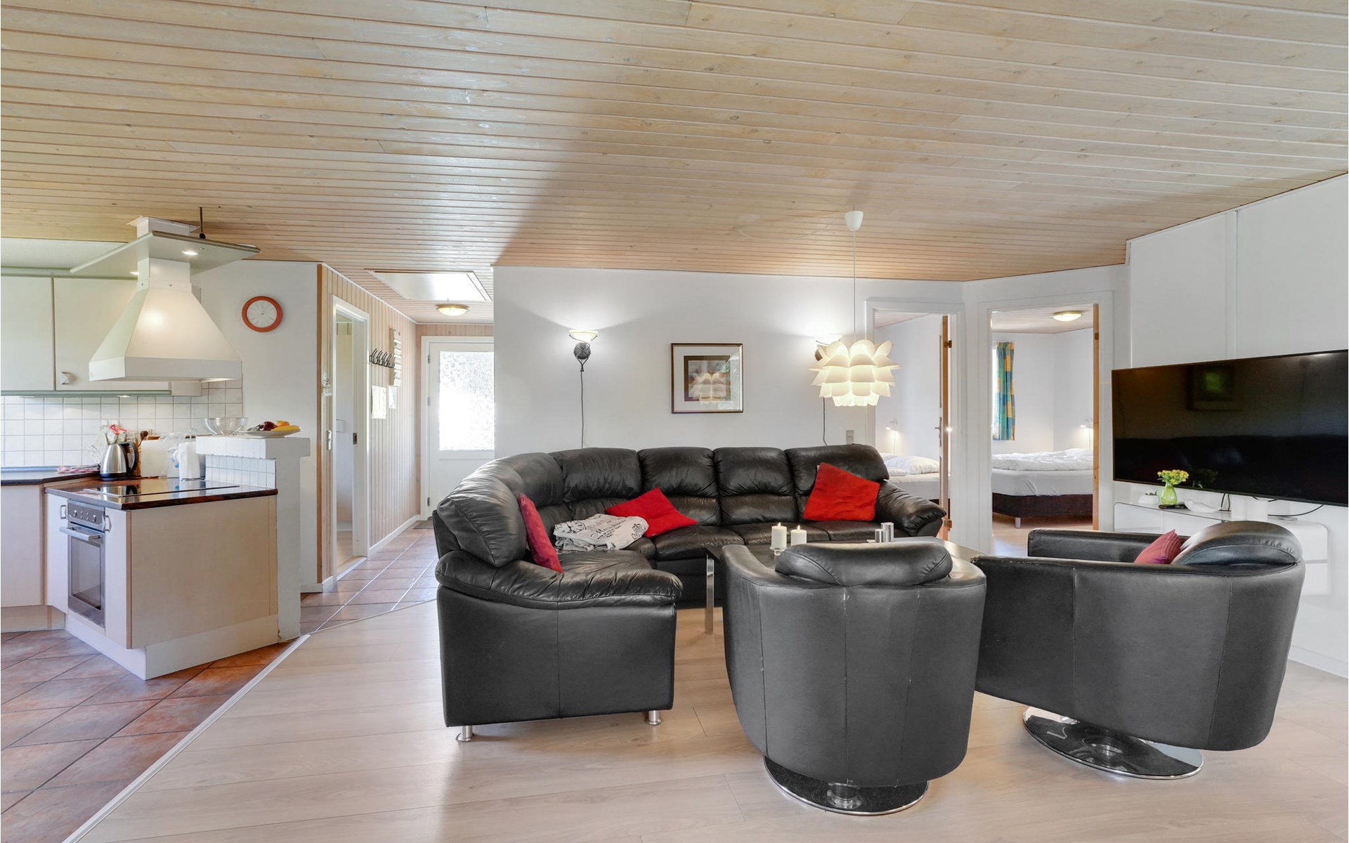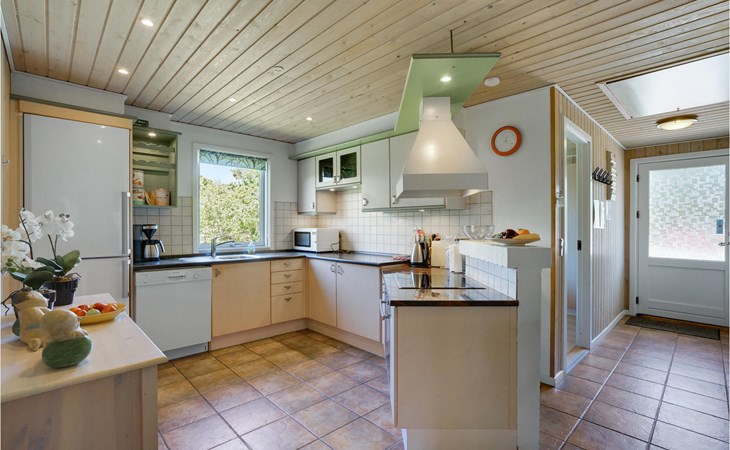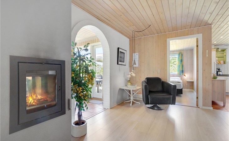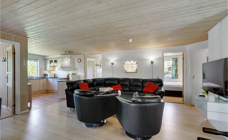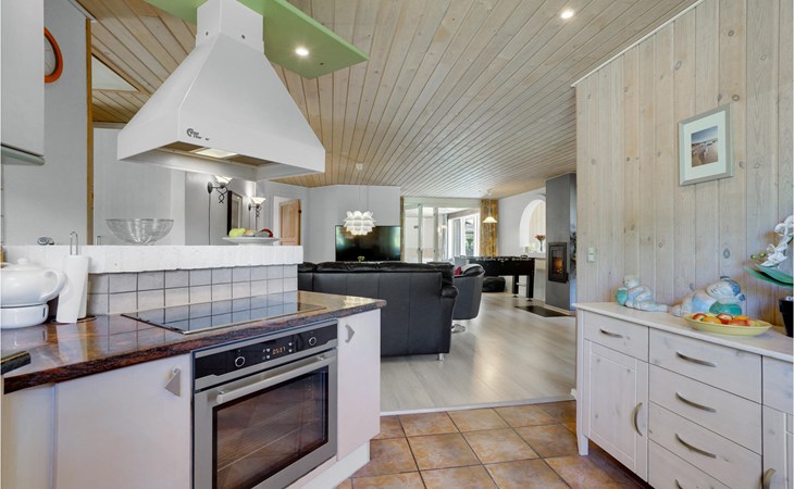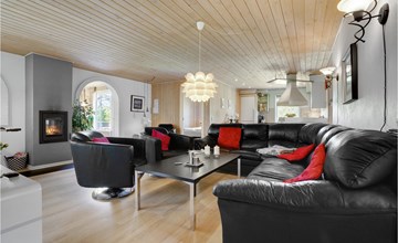 Auf einem leicht hügeligem Grundstück steht dieses attraktive Ferienhaus mit Swimmingpool. Es ist gemütlich und geschmackvoll eingerichtet. Der schöne Wohnraum liegt in Verindung mit der Küche und hat einen Kaminofen, der so platziert ist, dass Sie die behagliche Wärme von der Sitzecke im Wohnraum und vom Essplatz genießen können.
