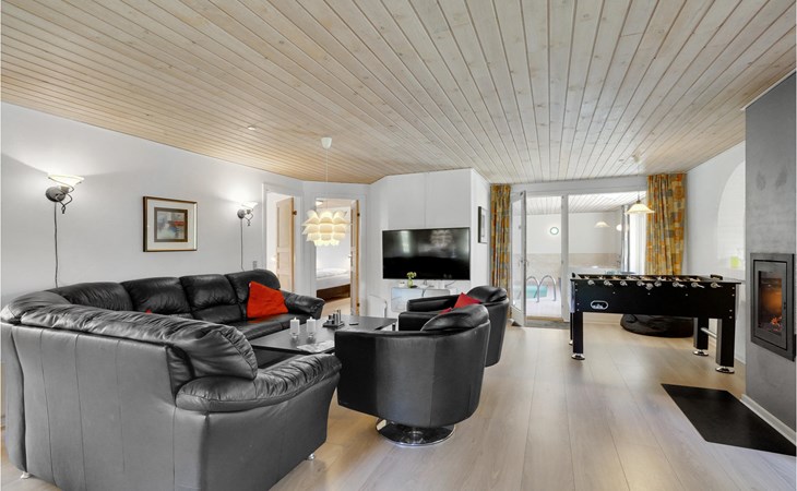 Der geräumige Poolbereich verspircht viele Stunden Badevergnügen im Swimmingpool und Entspannung in dem Whirlpool und in der Sauna. Um das Ferienhaus sind mehrere Terrassen angelegt, die mit Gartenmöbelnudn Sonnenliegen ausgestattet sind. An warmen Tagen bieten die Terrassen einen angenehmen Aufenthaltsort für die ganze Familie. Abends können Sie hier grillen und die Kinder können in Sandkasten, auf der Ruschte und der Schaukel spielen.