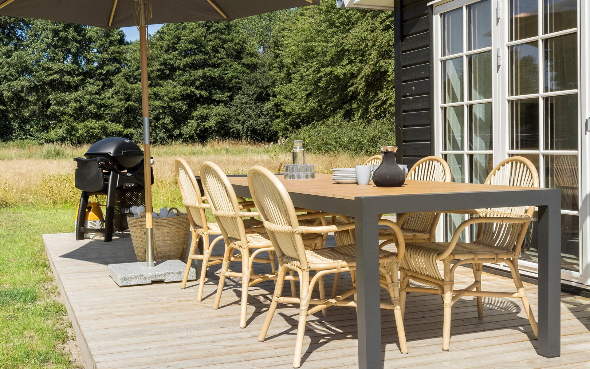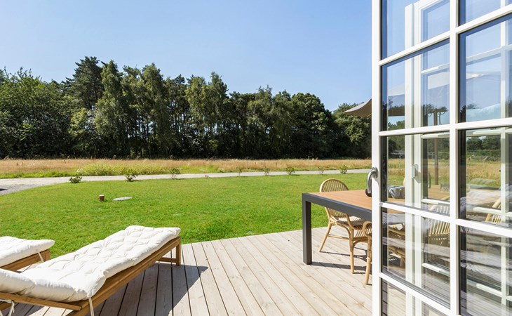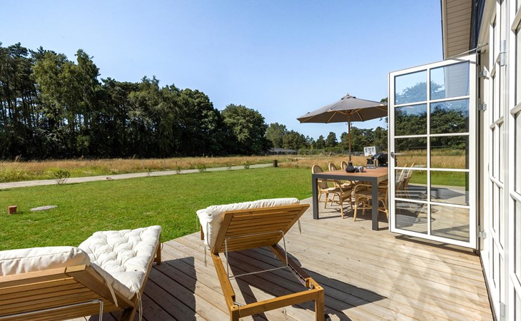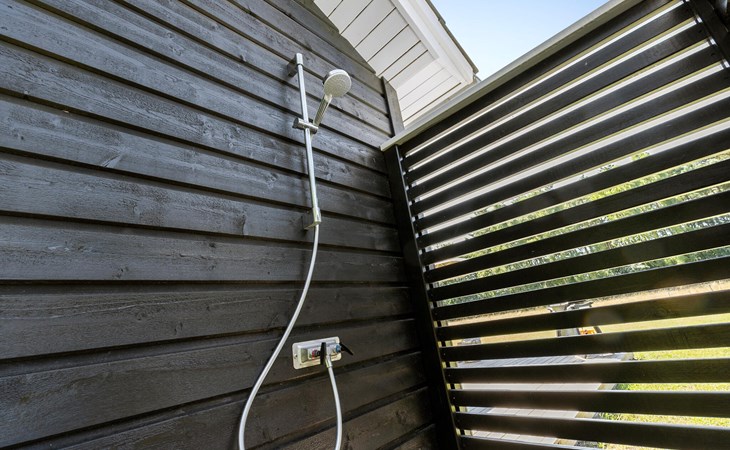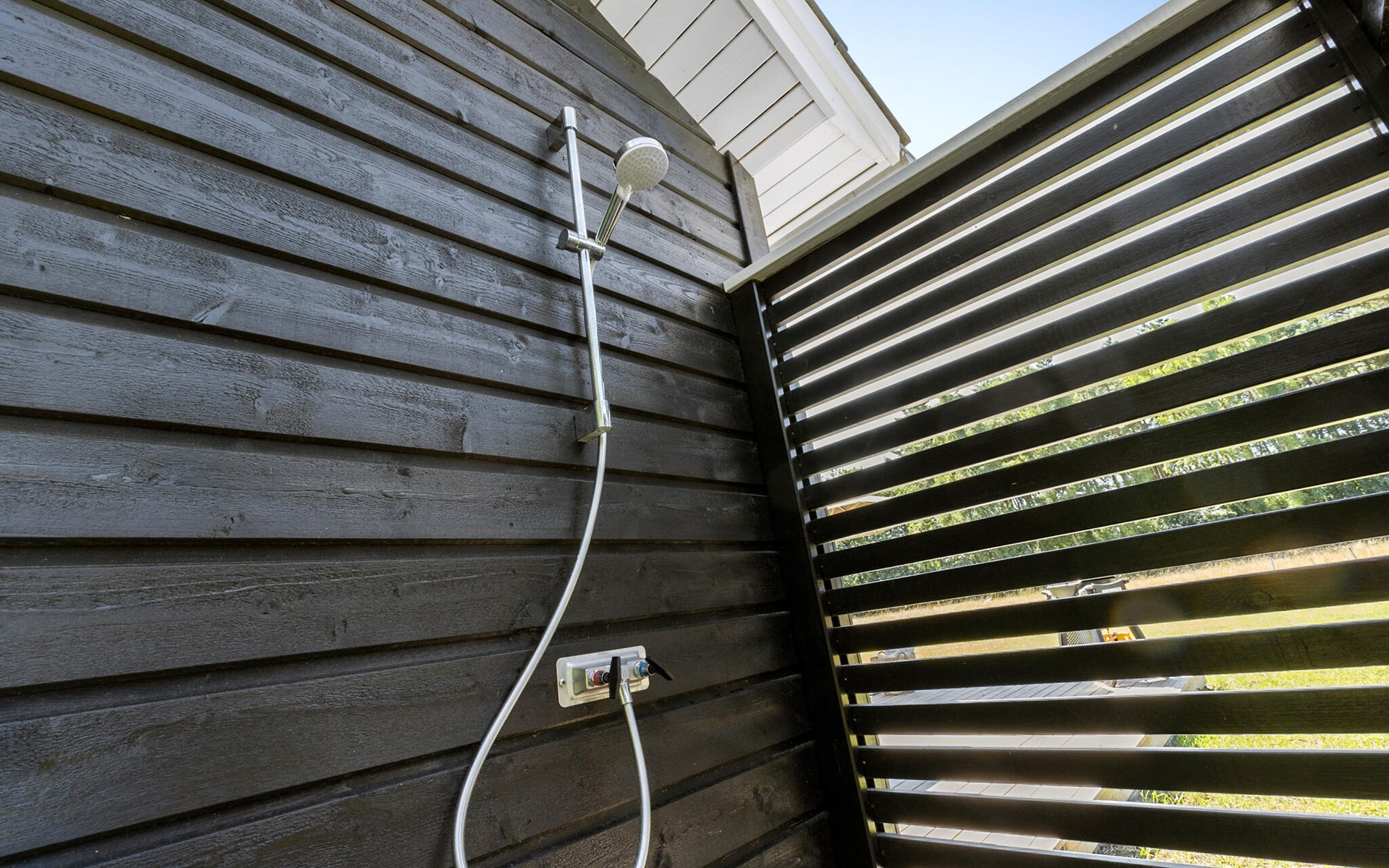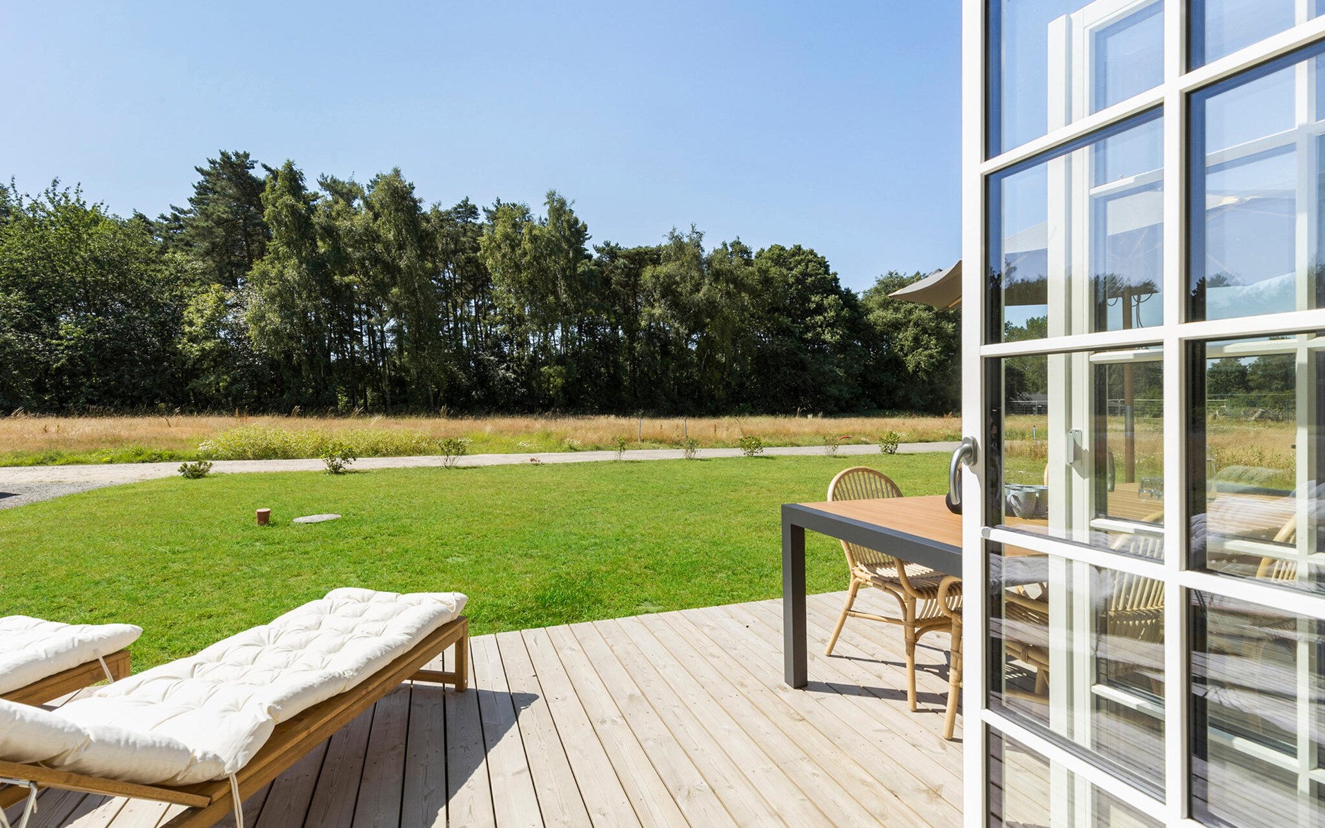 Kommen Sie hier zur Ruhe und treten hinaus auf die große Holzterrasse. Machen Sie es sich auf den Sonnenliegen und Gartenmöbeln bequem, erfrischen sich unter der Außendusche und schauen Ihren Kindern beim Spielen im Garten zu.