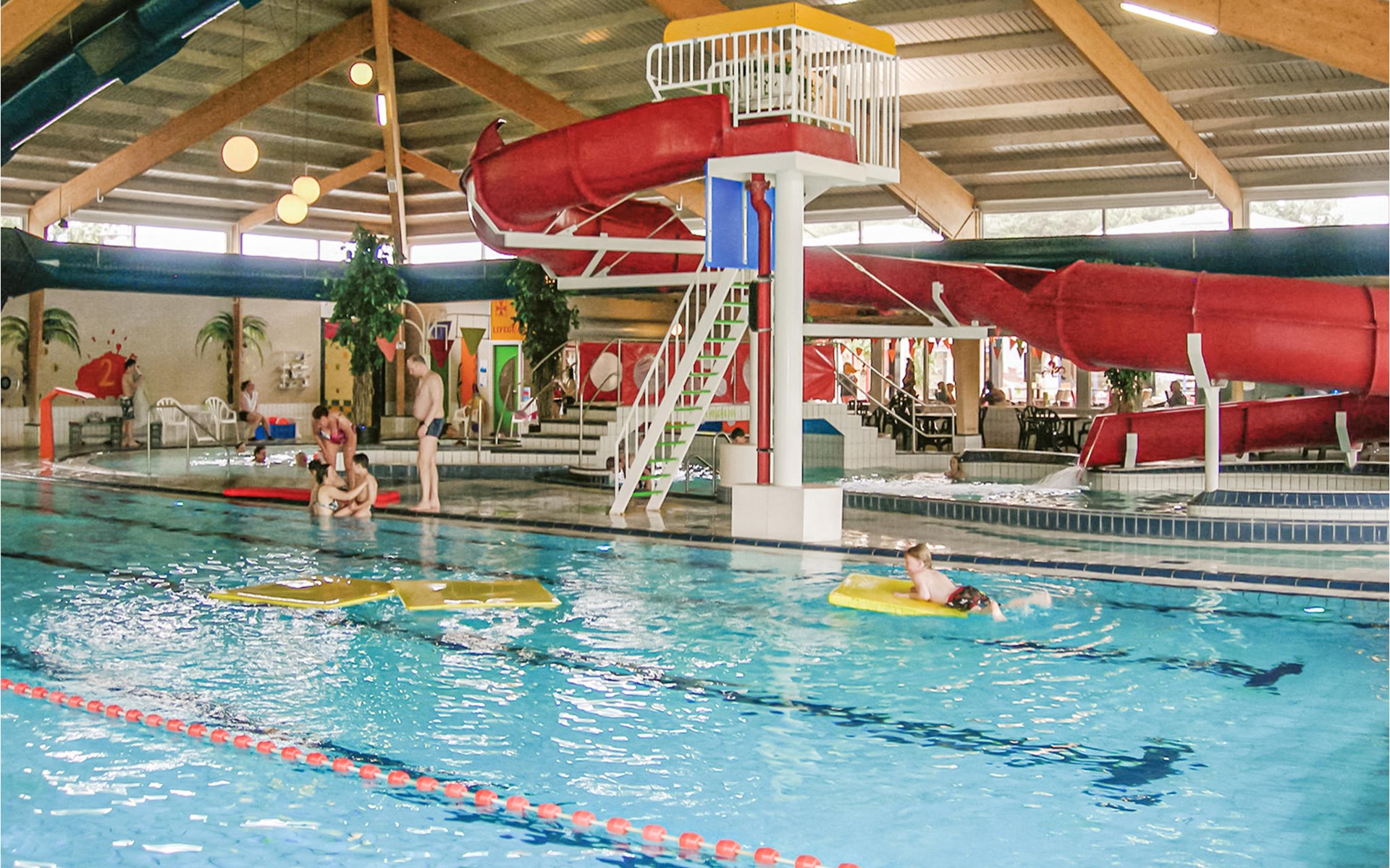 So haben Sie beispielsweise Zugang zu einem Hallenbad mit Wasserrutsche und separatem Kinderbecken.