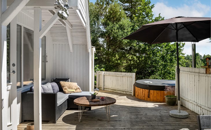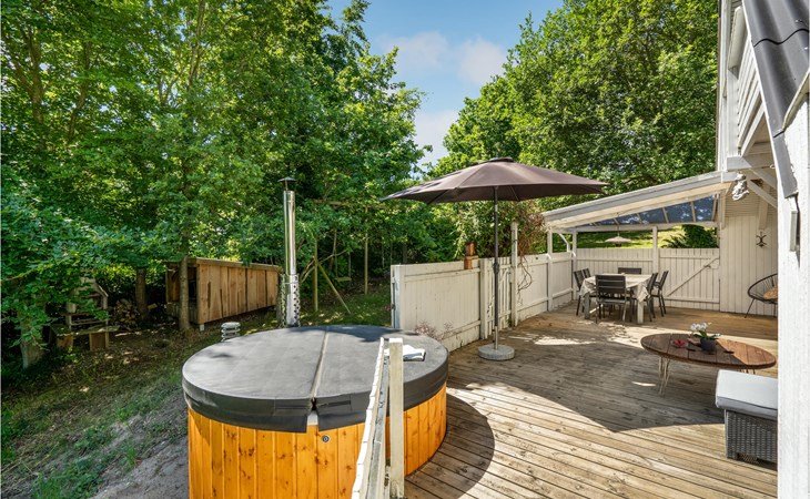 Kommen Sie mit Ihrer Familie und den geliebten Vierbeinern in dieses geräumige Ferienhaus und erleben Sie einen wunderbaren Urlaub in Djursland. Verbringen Sie nicht nur in der großen Wohnküche viele gesellige Stunden, auch auf der Terrasse finden Sie sonnige und windstille Ecken. Hier lässt es sich herrliche am Morgen frühstücken, während Sie mit Ihren Liebsten den bevorstehenden Tag planen. Am Nachmittag lädt der große Garten zum Spielen und Herumtoben mit den Kindern und Haustieren ein, während Sie es sich am Abend vor der Feuerstelle gemütlich machen können. Bringen Sie eigene Ausrüstung mit, um die Nacht im Shelter zu verbringen und echtes Outdoor-Feeling zu erleben. Auch der Whirlpool auf der Terrasse lockt nach erlebnisreichen Tagen zu willkommener Entspannung unter dem Sternenhimmel.