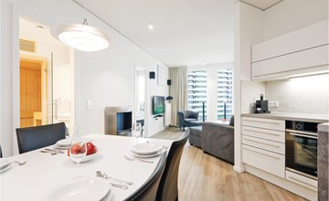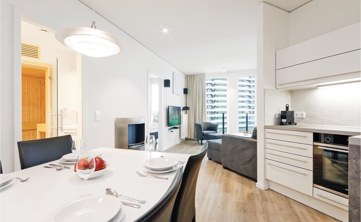 Die moderne Küchenzeile bietet ausreichend Platz zum Kochen und ist mit hochwertigen Markengeräten ausgestattet. Hier finden Kaffeeliebhaber eine Nespresso-Maschine (Kapseln bitte selbst mitbringen), sowie Thermoskanne und Handfilter zum Selbstbrühen, falls Sie doch den klassischen Filterkaffee bevorzugen.