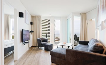 Auf dem Balkon können Sie die frische Ostseeluft und das Rauschen der Wellen genießen oder gemeinsame Mahlzeiten mit der Familie einnehmen. Genießen Sie hier den einmaligen Ausblick auf die Wellen der Ostsee. Gegen ein kleines Pfand können Sie sich an der Rezeption ein Fernglas ausleihen, mit dem Sie das Treiben der Umgebung und die Natur beobachten können.
