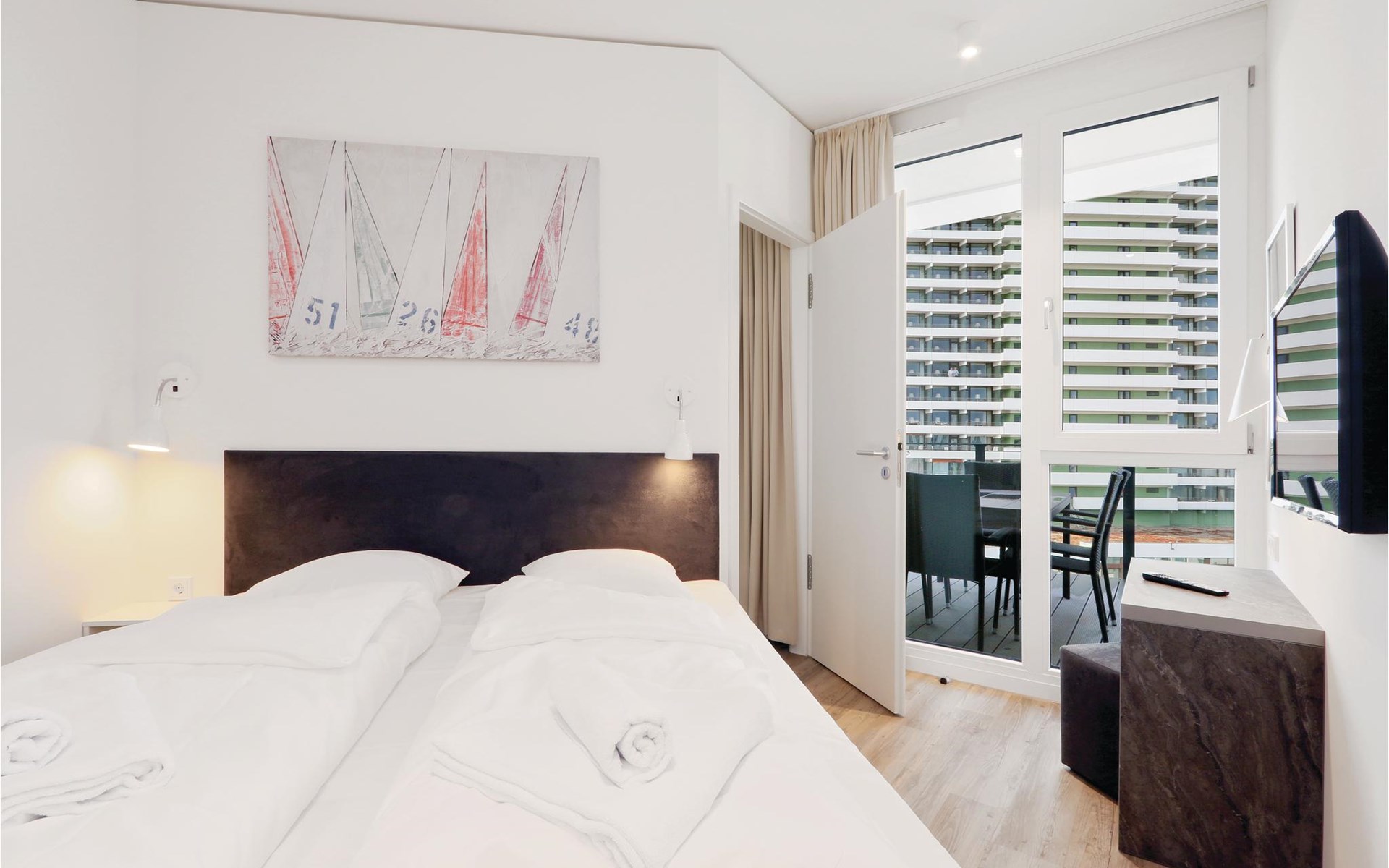 Die Wohnung verfügt über zwei separate Schlafzimmer mit jeweils einem gemütlichen Doppelbett. Im Wohnbereich können Sie es sich vor dem wohligen Licht des Bio-Ethanol-Kamins gemütlich machen. Auch das Schlafsofa befindet sich im Wohnbereich, welches zwei weitere Schlafplätze bietet. Ein Kinderbett lässt sich ausschließlich im Wohnzimmer aufstellen, da im Schlafzimmer nicht ausreichend Platz zur Verfügung steht.