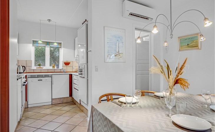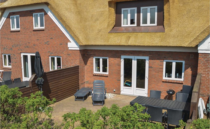 Ein gemütliches reetgedecktes Reihenhaus im Herzen Blåvands gelegen. Der offene Küchen-Wohnbereich liegt im Erdgeschoss, im Obergeschoss befinden sich 3 Schlafzimmer, sowie ein Badezimmer. Eine kleine gemütliche windgeschützte Terrasse lädt zum Sonnenbaden ein. Es gibt gute Restaurants, ein Pub, Airhockey, ein gratis Spielland für Kinder, Spielmaschinen und Pooltische. Der herrlich weiße Sandstrand erstreckt sich vom Leuchtturm bis nach Skallingen.