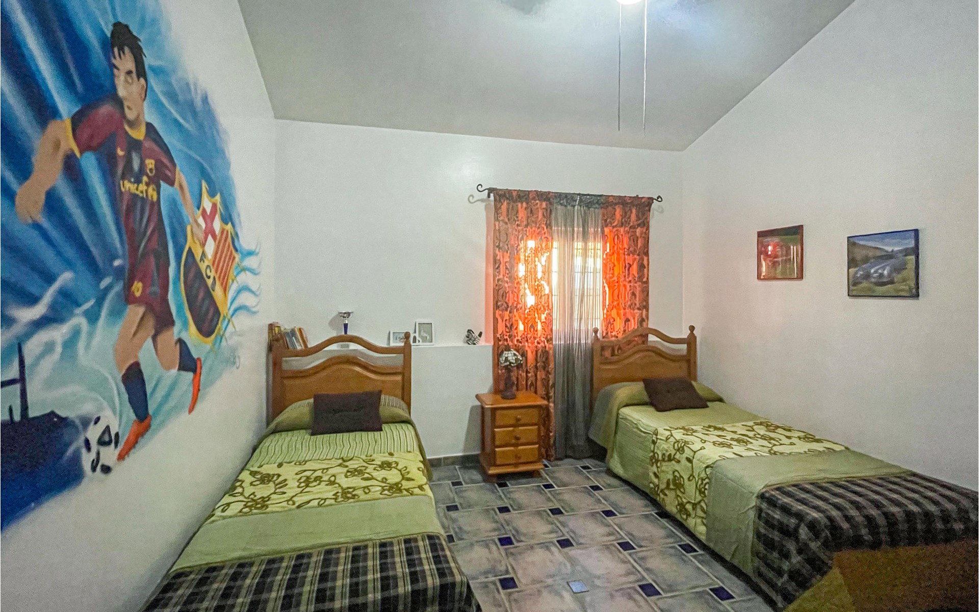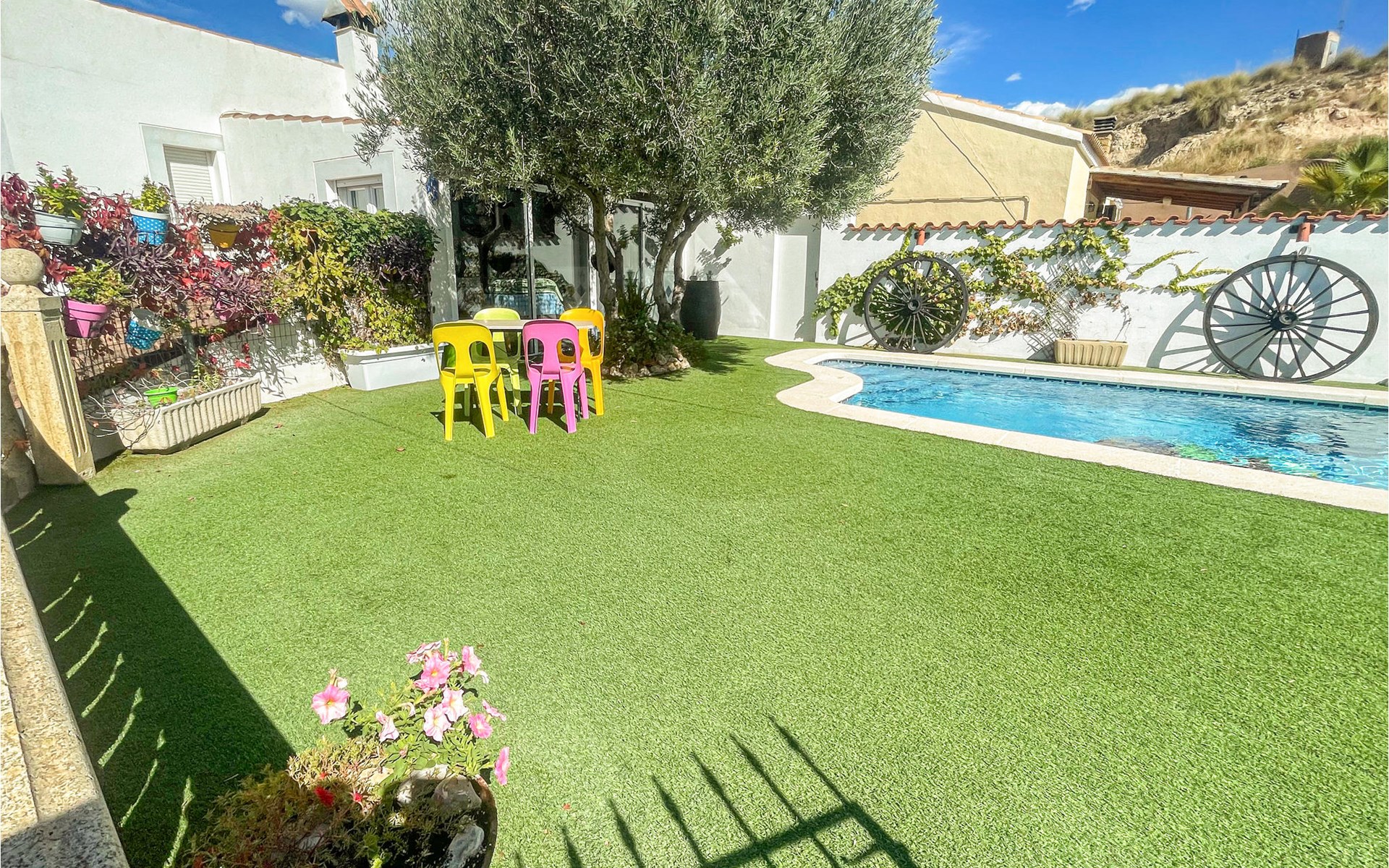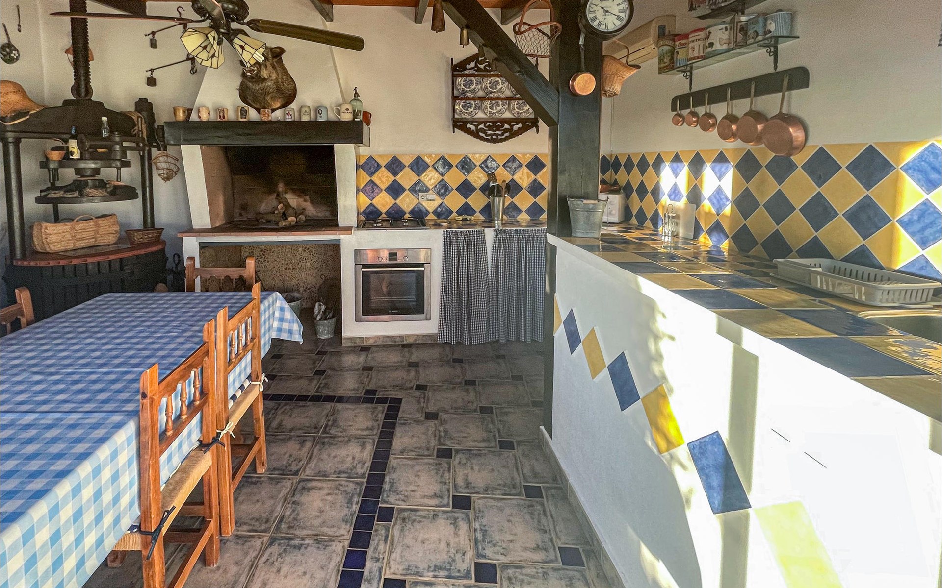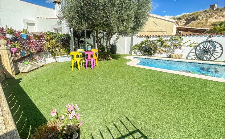 In einer ländlichen Umgebung ist dieses schöne Ferienhaus im kleinen Dorf Las Terreras ruhig gelegen. Auf einer großen Wohnfläche können Sie den Familienurlaub mit Ihren zwei Vierbeinern verbringen und die frische Luft auf der großartigen Terrasse oder am Pool genießen. Die Inneneinrichtung ist rustikal und landestypisch gehalten und bietet Ihnen sämtlichen Komfort. Der Kamin im Wohnzimmer hält Sie auch in den kalten Wintermonaten kuschelig warm und macht es zum idealen Urlaubsort zu jeder Jahreszeit. Das Feuerholz für den Kamin kostet extra.