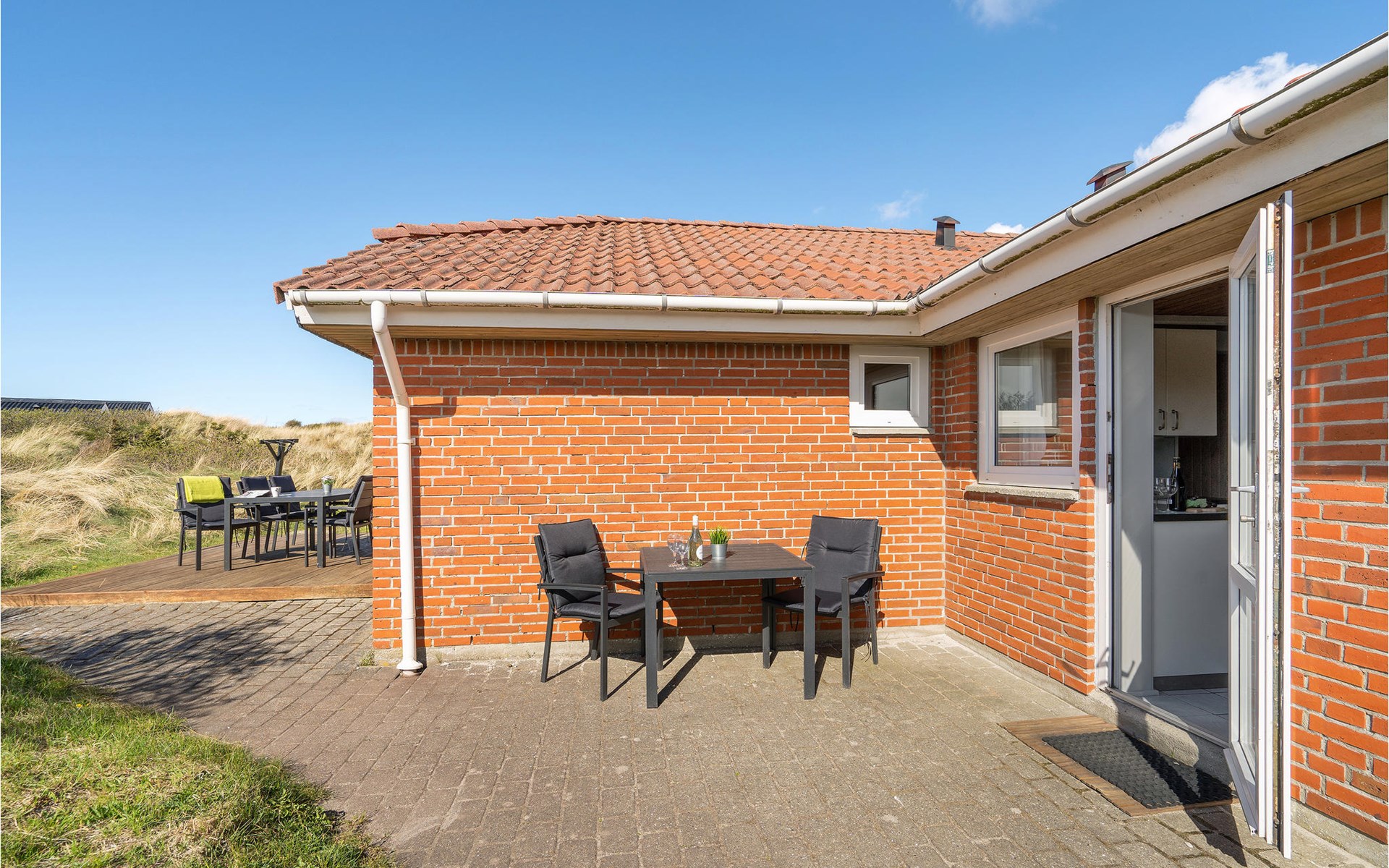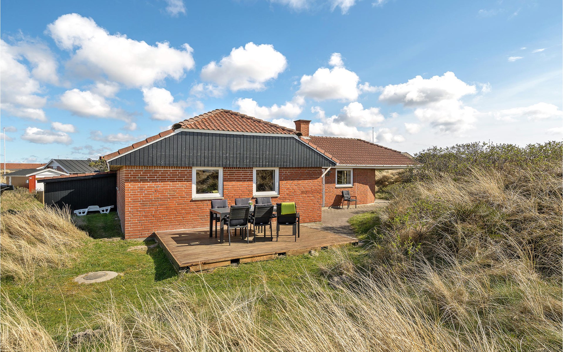Nur gut fünf Minuten Fußgang von der fazinierenden Nordsee und dem breiten, weißen Sandstrand mit seinen enormen Dünen liegt dieses hübsche Ferienhaus mit Swimmingpool eingebettet in einer traumhaften Dünenlandschaft. Das Haus wird laufend instand gehalten und ist zeitlos und angenehm eingerichtet. Rund um das Haus liegen mehrere schöne Terrassen, die je nach Windrichtung und windstille Plätzchen bieten.