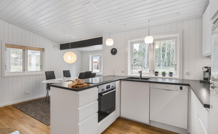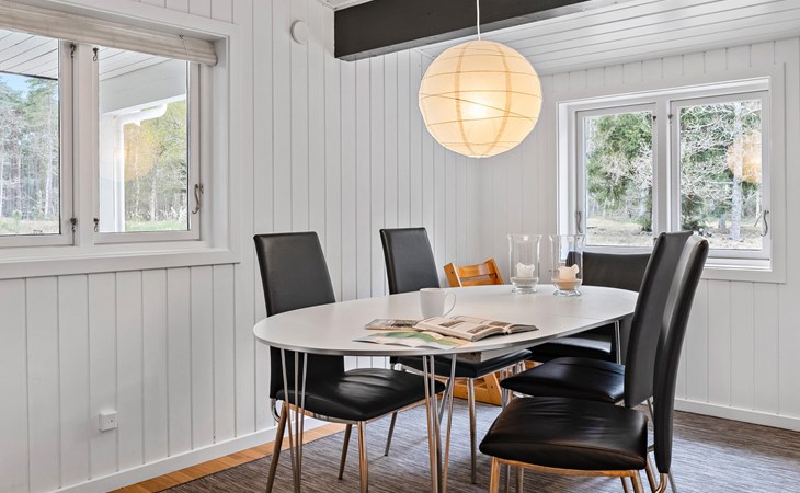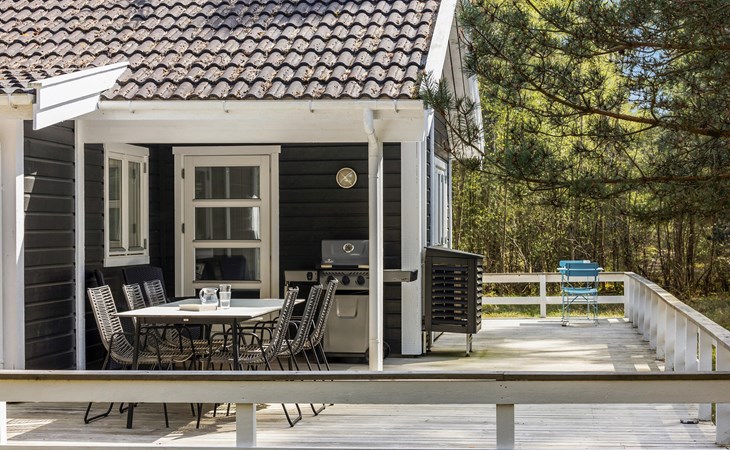 Ihr gepflegtes und freundlich eingerichtetes Ferienhaus erwartet Sie inmitten eines ruhigen Naturgrundstücks. Verbringen Sie entspannte Tage mit der Familie und profitieren Sie von der Nähe zum Strand. Das Haus überzeugt mit einem hellen, zeitgemäßen Einrichtungsstil. Nutzen Sie den offenen Wohn- und Essbereich für gemeinsame Stunden und bereiten Sie Ihre Mahlzeiten in der modernen Küche zu. Die gemütliche Sofaecke lädt zum Ausruhen in dieser freundlichen Atmosphäre ein. Für wohltuende Wärme sorgt die hauseigene Sauna, ideal zum Entspannen nach einem Tag an der frischen Luft. Auch für Unterhaltung ist gesorgt. Spielen Sie eine Runde Tischtennis mit der ganzen Familie.
