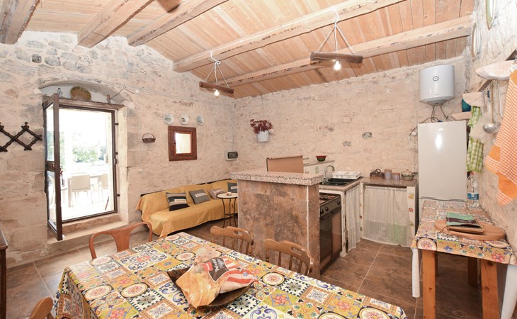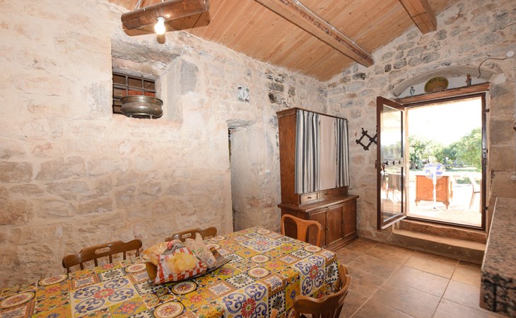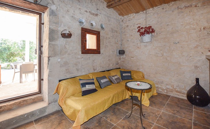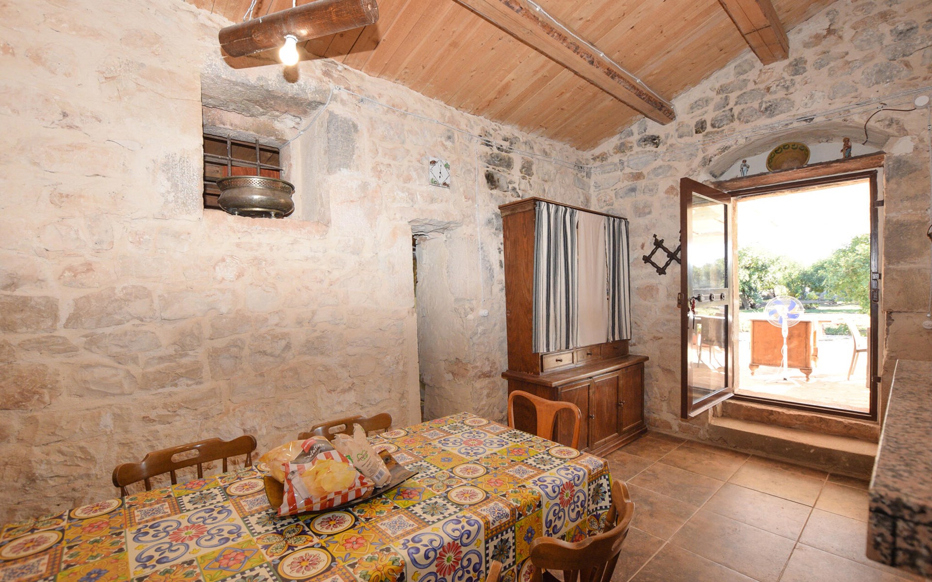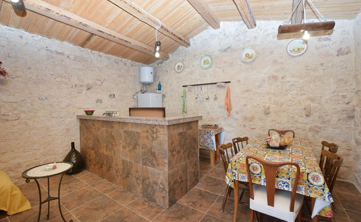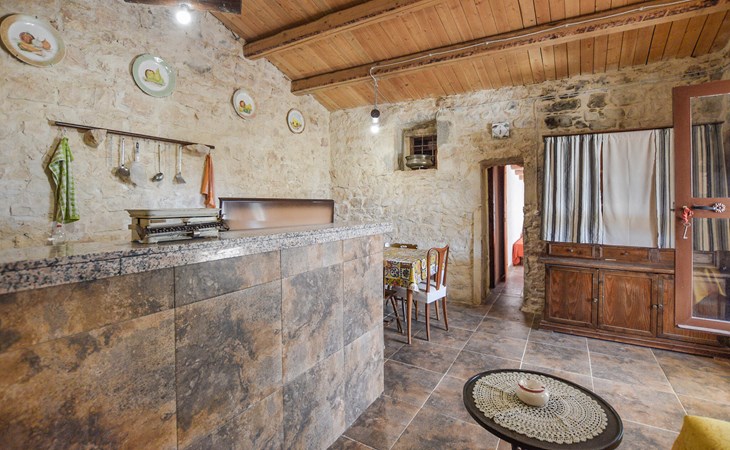 This cosy holiday home welcomes you with a harmonious ambience of natural stone walls and neat wooden ceilings. A fully equipped, rustic kitchen and a stylish dining area with colourful accents invite you to enjoy convivial meals. Make yourself comfortable in the cosy seating area and unwind - the perfect place to enjoy the tranquillity of the house.