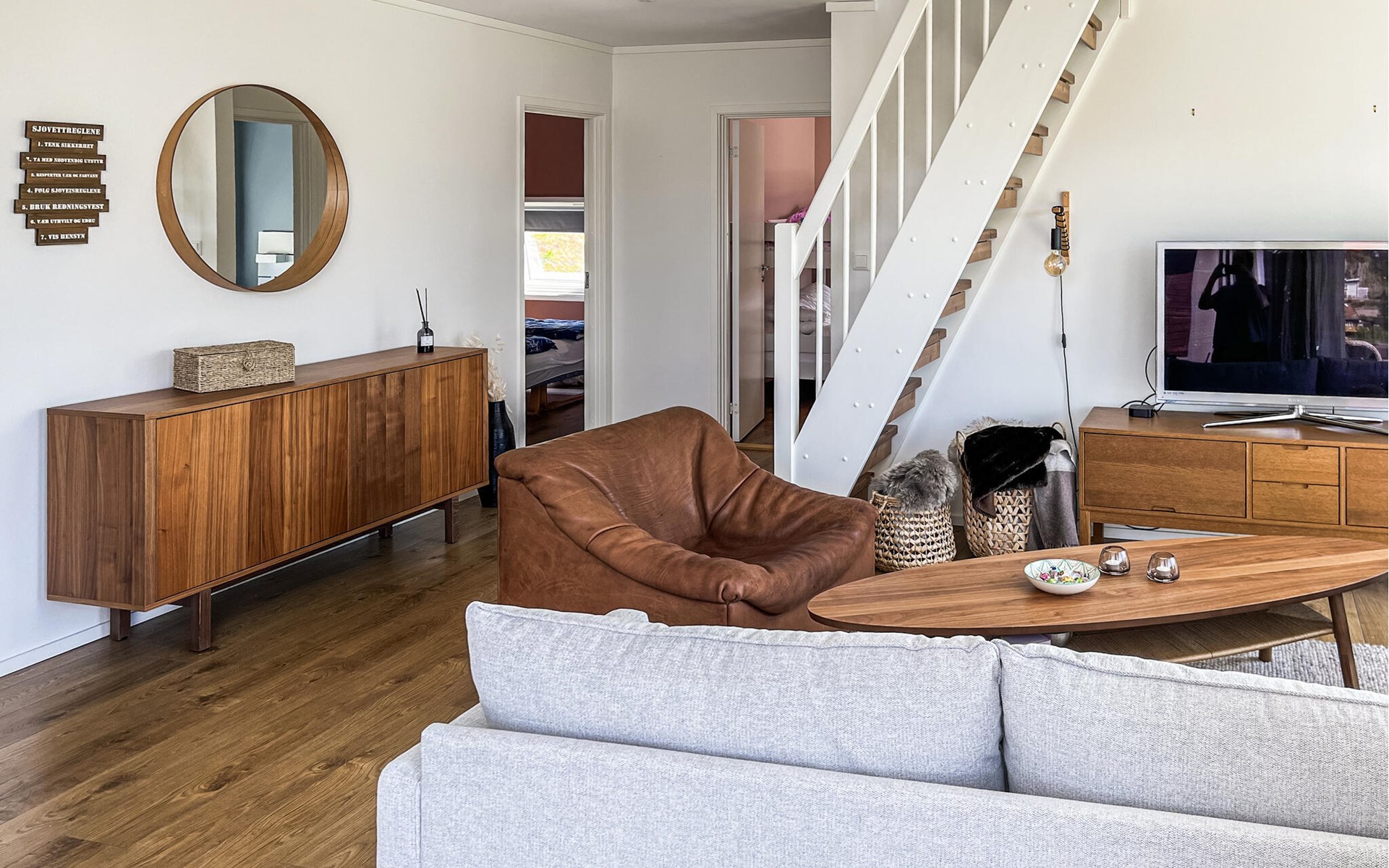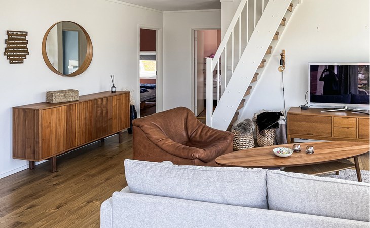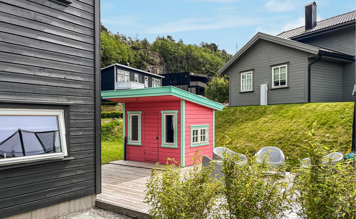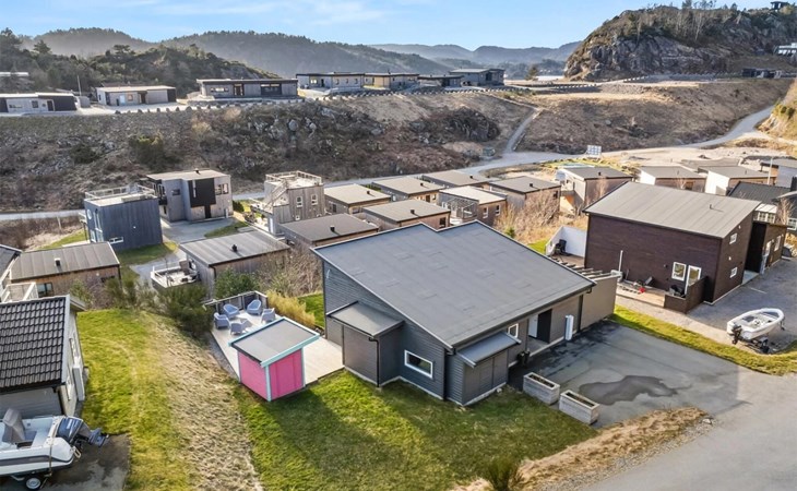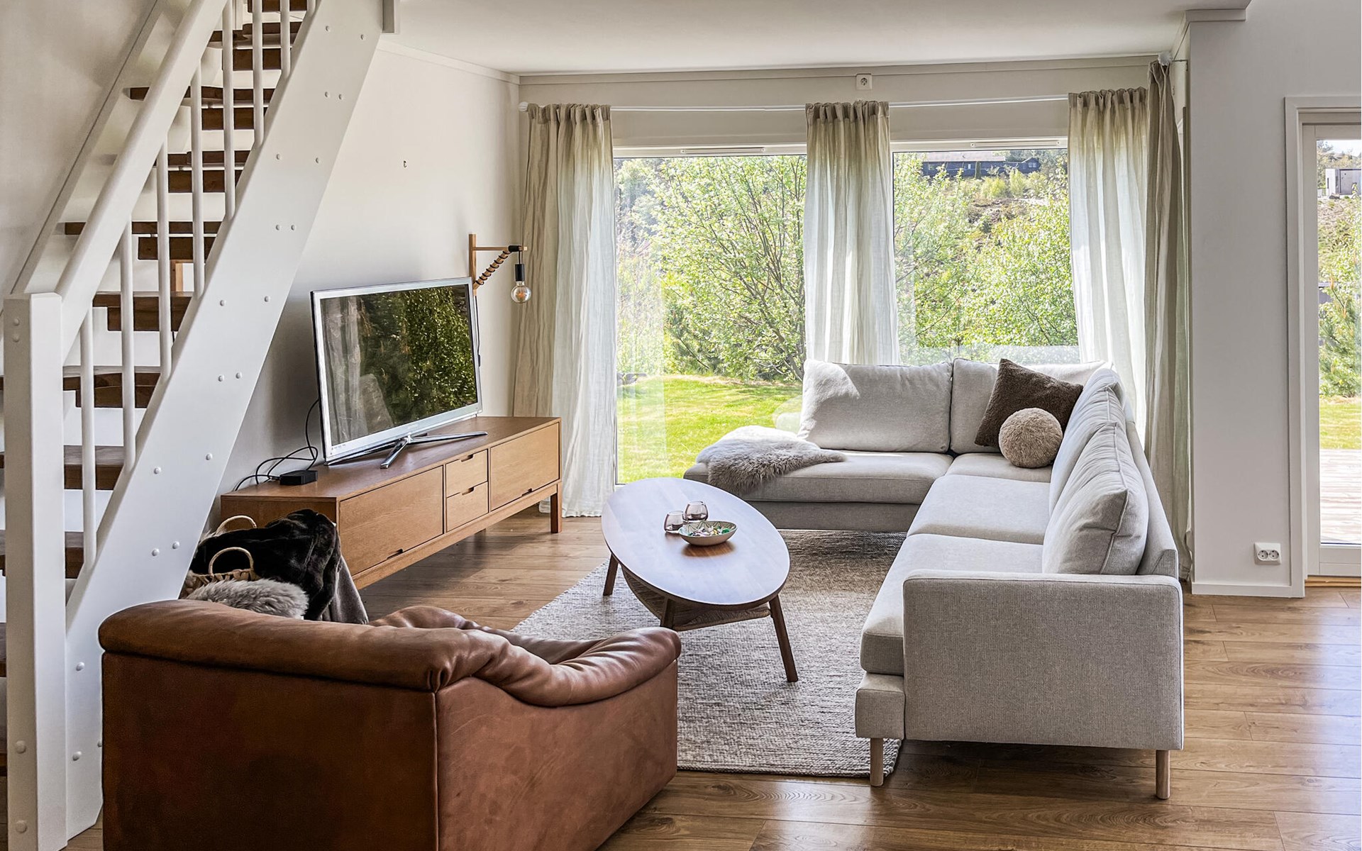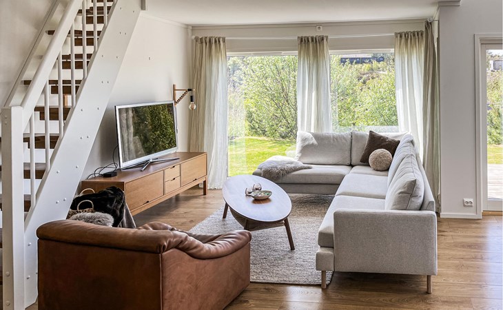 Located in the very south of Norway, this modern vacation home offers the ideal retreat if you want to leave the stresses of everyday life behind and immerse yourself in the beauty of the surrounding landscapes. With a bright interior that combines Scandinavian simplicity with cozy comfort, it is the ideal vacation base for families and groups of friends. Start your day with a cup of coffee in the kitchen while the morning sun streams through the large window. Take time for a slow breakfast at the long dining table. The living area, furnished with a comfortable sofa and warm wood tones, invites you to relax. Here you can retreat with a good book or unwind with a good movie during a cozy family evening.