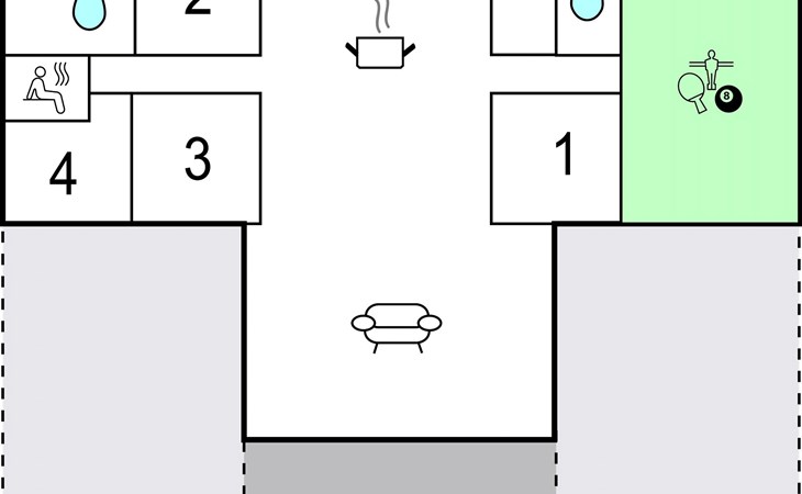 A fantastic cottage with four good bedrooms and two sleeping lofts with two beds each. The cozy activity room of the house with open ceiling to the ridge offers the possibility for billiards tournaments. There is also a lovely kitchen-living room combination located in the middle of the house that automatically becomes a gathering place for meal preparation and cozy hours by the crackling fireplace. In one of the bathrooms there is also a whirlpool and access to the sauna for 2-3 people. There is a fenced lake on the property. The house is located at the beginning of Bagenkop, the southernmost town on Langeland. Here you can still experience a well-preserved and authentic fishing harbor, from which cutters leave daily. There is also a beautiful, modern sports harbor with summer concerts. Bagenkop is an active place where you can also be active: There is a sports hall, a fitness center, Jump'n Move or an adventure trail (about 2 km) that takes you through the town and tells a little story. Only 600 m from the cottage you can meet smaller herds of wild horses at Klise Nor. At Langelandsfort with the Cold War Museum you can board a submarine and read about the activities of the spies during the Cold War.