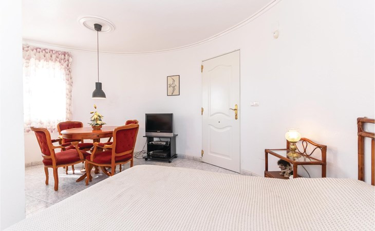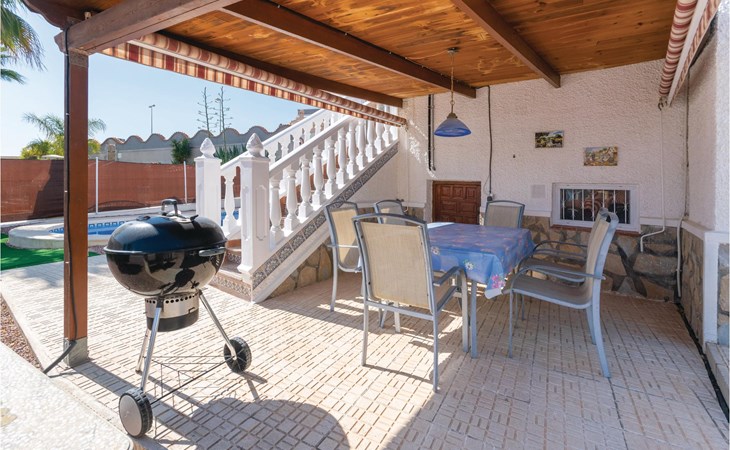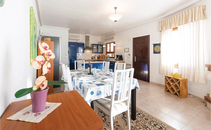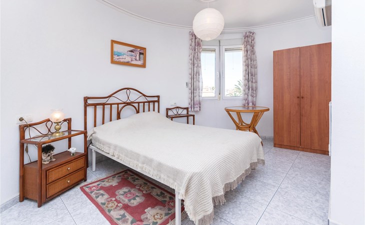 Nice vacation house with private pool and beautiful view from the prominent tower to the sea and the salt lake. The house consists of three separate living parts, which are located on staggered floors. In the main living area there are two bedrooms, a bathroom, as well as the beautiful, modern fitted kitchen with cooking island and the adjacent dining area. The living room offers two additional sleeping accommodations on request and at extra cost. The other two parts of the house, including the tower, each house one bedroom and one bathroom and can only be accessed from the outside, i.e. they are not accessible from the main living area. The covered outdoor seating area with barbecue invites you to spend cozy evenings. The cottage is especially suitable for friendly couples and families with teenagers who have always wanted to stay in their own tower room. Internet for an extra charge.