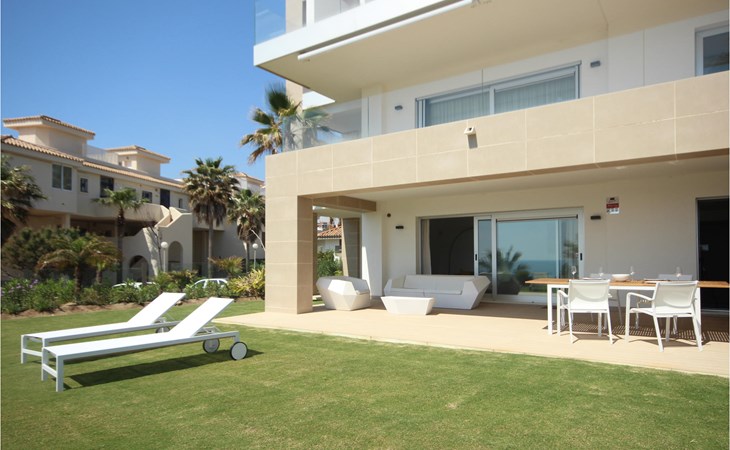 Fantastic, comfortable vacation home with 3 large bedrooms, stylish furnishings, fully air-conditioned and a large terrace, garden and well-equipped veranda. Here you can dine al fresco, lie in the sun and enjoy the fantastic view of the sea. The accommodation is located near Estepona in a prestigious complex with communal pool and great sea views, just 60 meters from the beach and not far from bars and restaurants. Spend a relaxing vacation here with your family or friends in beautiful weather and be inspired by the varied leisure activities in the area.